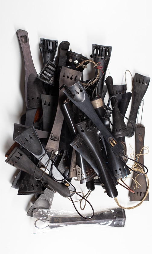 Forty-three cello tailpieces