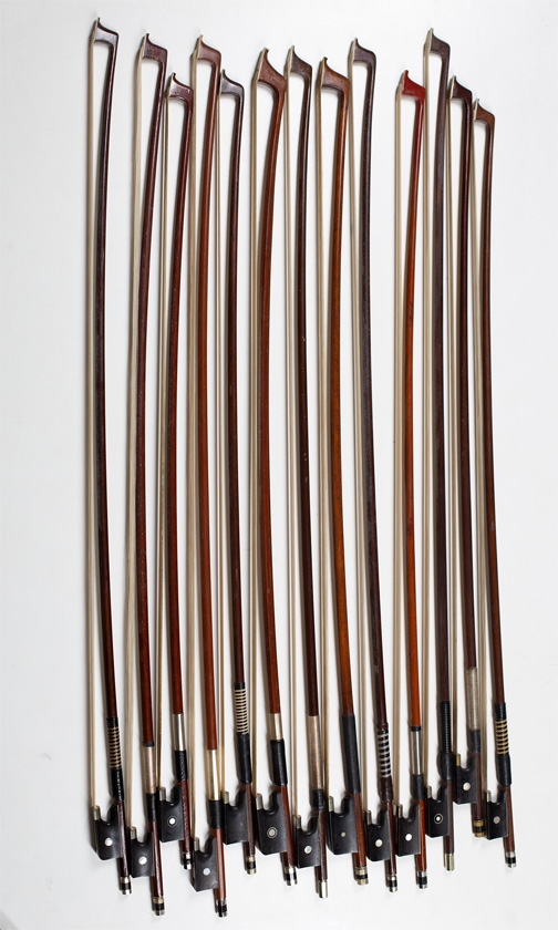 Eleven child's violin bows and two child's cello bows
