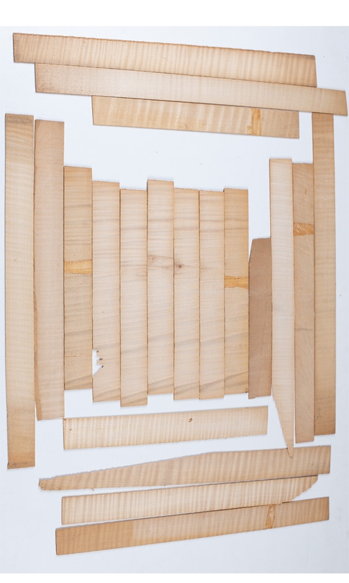 Eighteen maple violin rib blanks