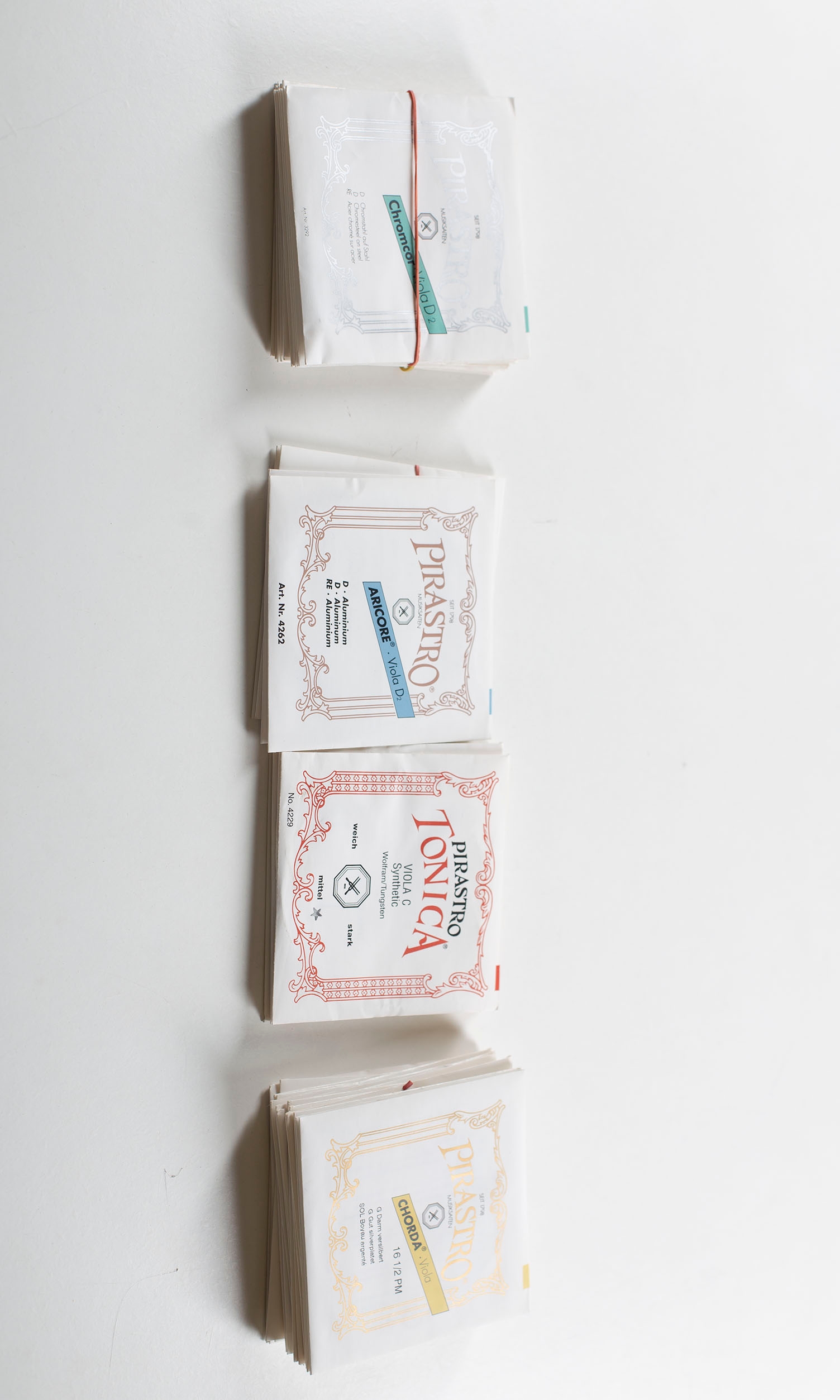 Forty various Pirastro violin strings
