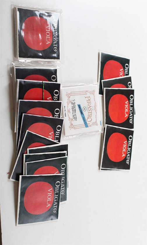 Three sets of Obligato viola strings and fourteen various Obligato viola strings
