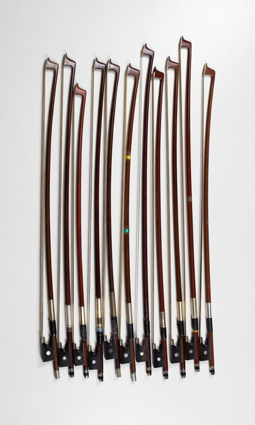 Eleven 1/4 size violin bows