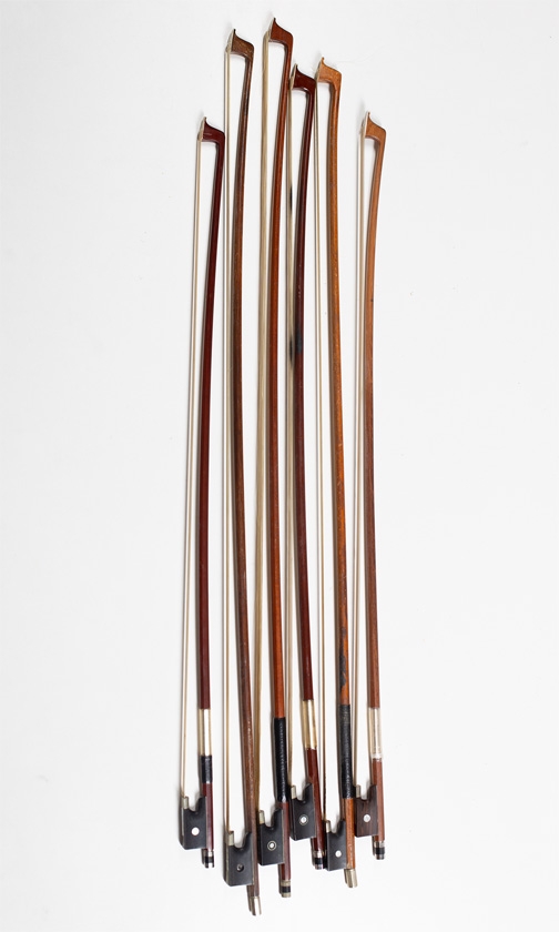 Two violin bows and four child's violin bows