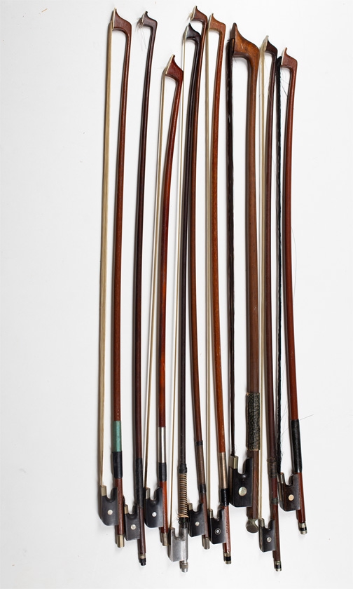 Four violin bows, four cello bows and one bass bow
