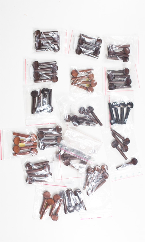Seventy violin and viola pegs