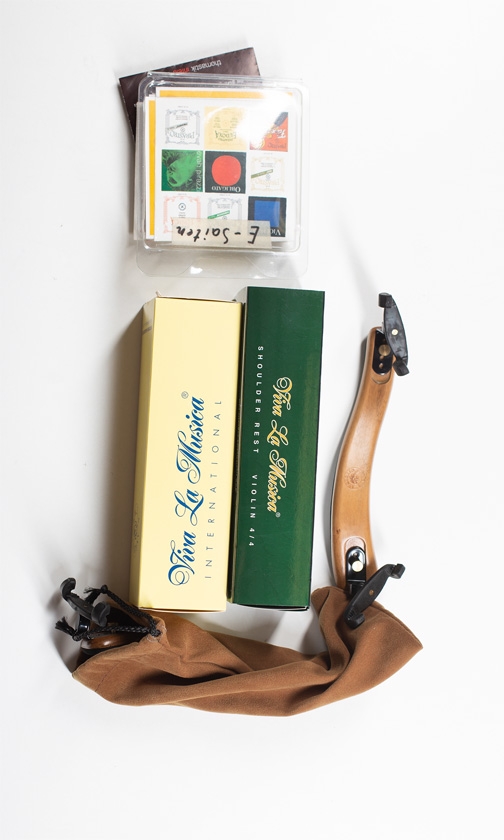 Four shoulder rests and a large quantity of strings