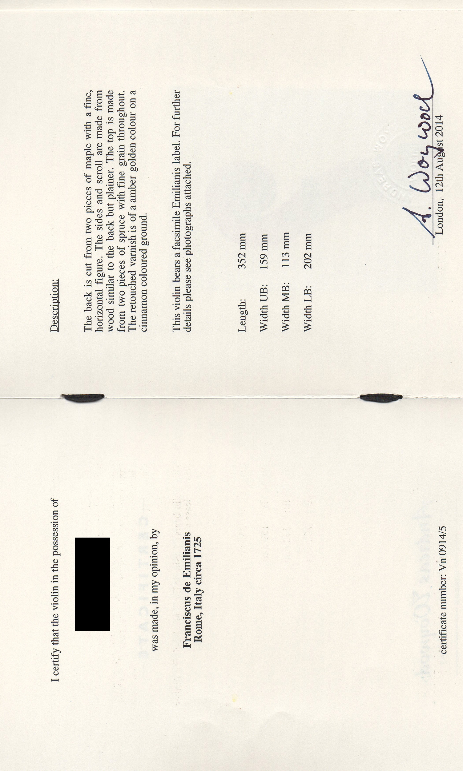 | Single Violin | £55 | £76 | £104 | £145 |