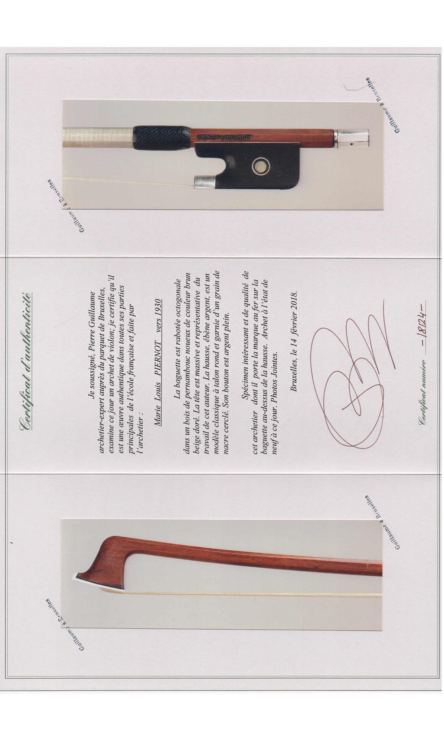 Sold with: 1 Certificate of Pierre Guillaume, Brussels, 2018