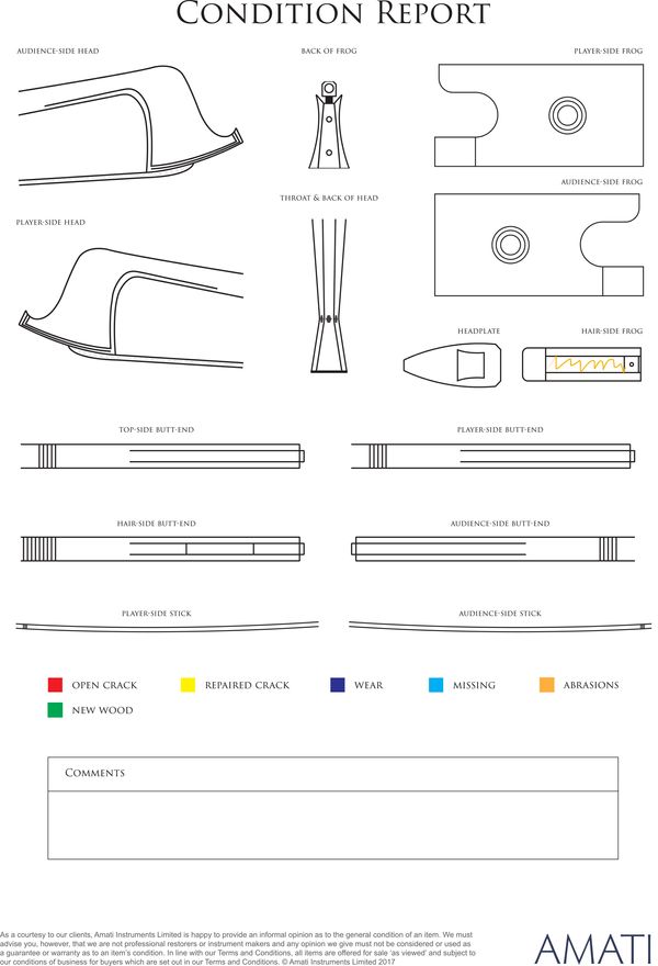 A nickel-mounted violin bow