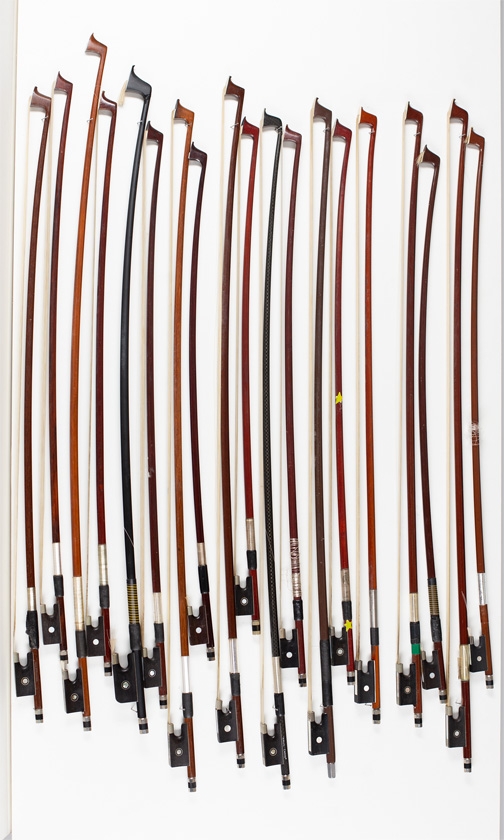 Six violin bows, thirteen child's violin bows and one cello bow, various sizes
