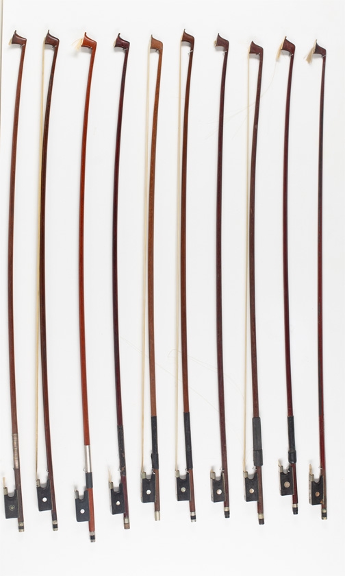 Ten violin bows