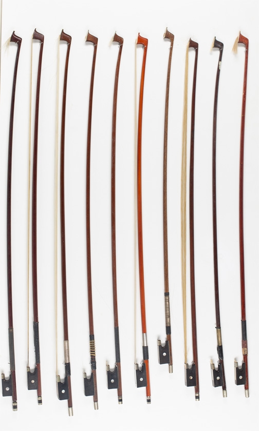 Ten violin bows