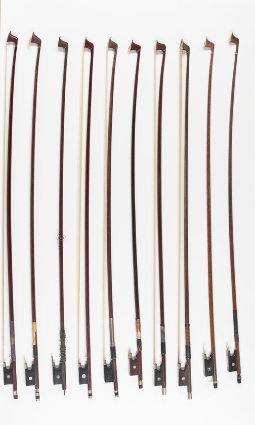 Ten violin bows