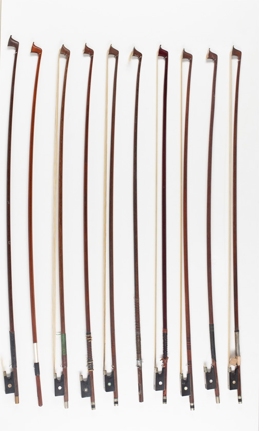 Sixteen violin bows