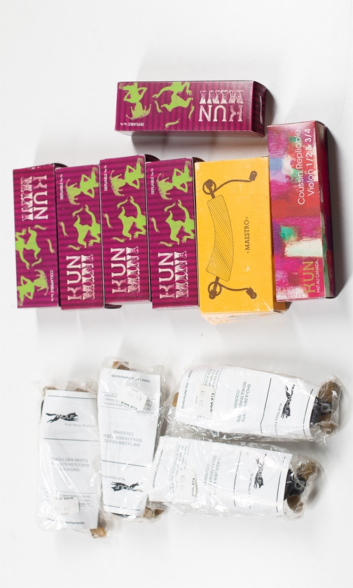 Eleven violin shoulder rests, various sizes