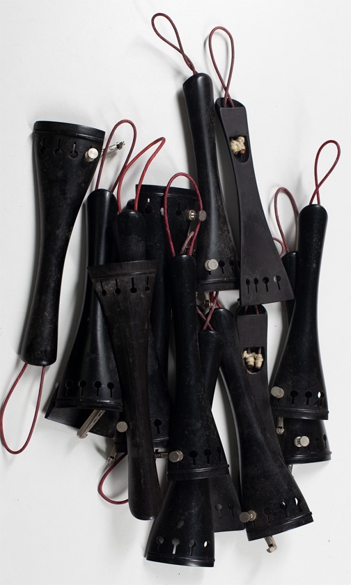 Fifteen cello tailpieces, various sizes