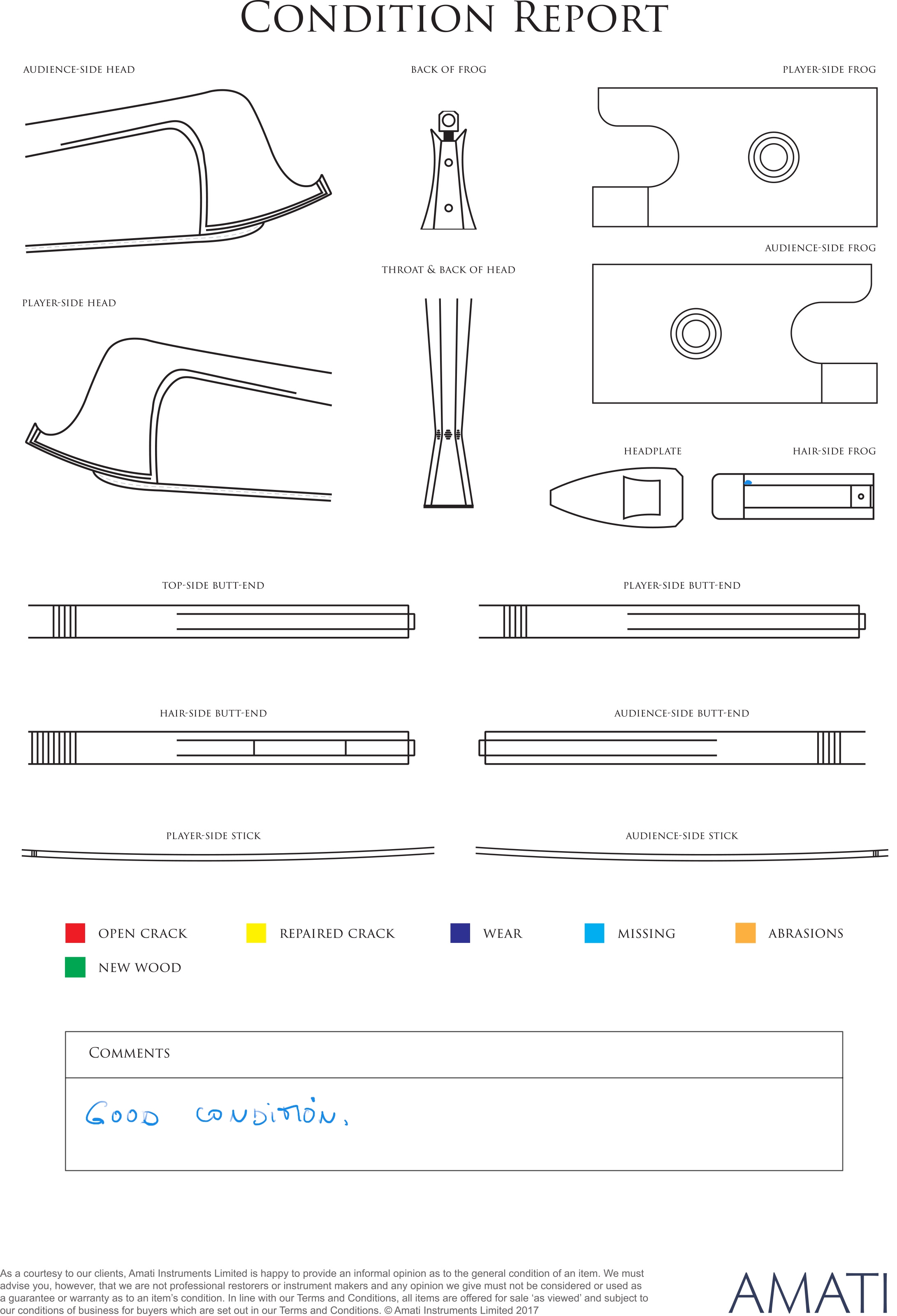 A gold-mounted cello bow