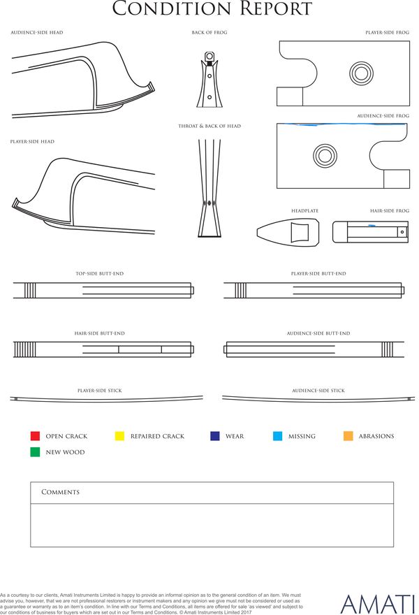 A silver-mounted violin bow, Workshop of Fredrich Glass, Germany