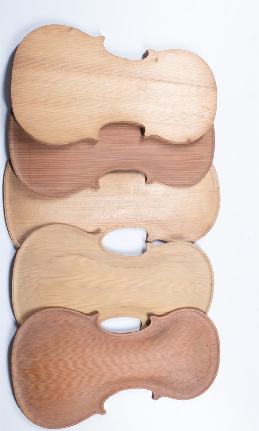 Five spruce violin tables