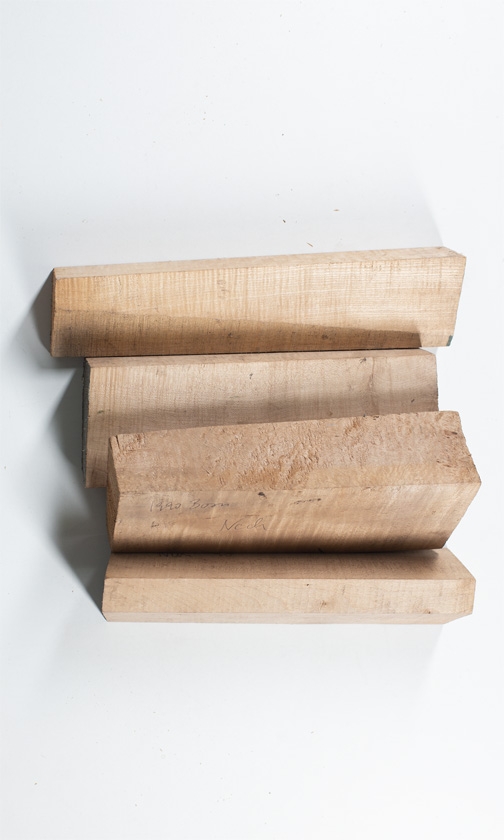 Four maple violin neck blanks