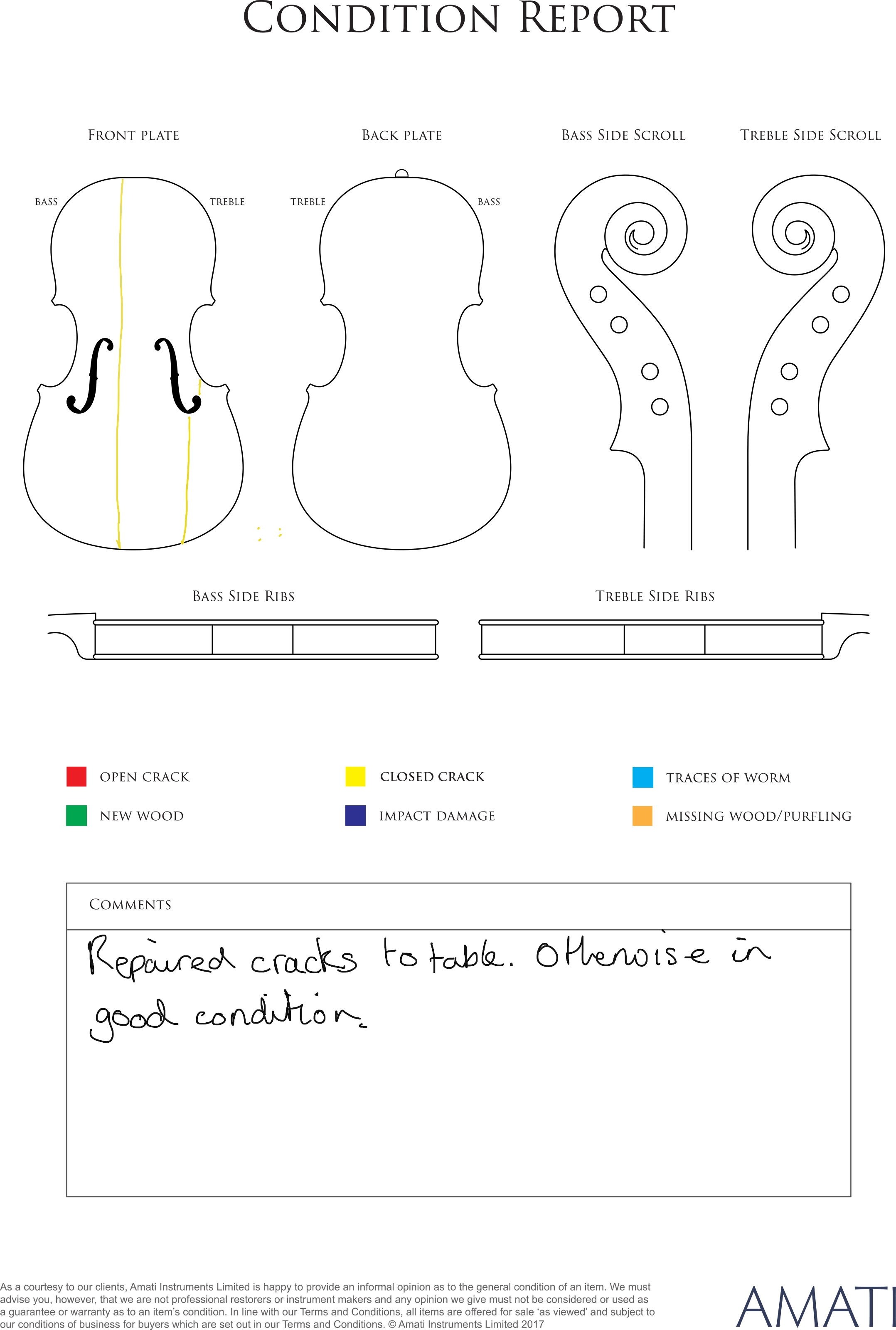 Please note condition reports for the instruments and bows will be added to the Lot pages this week.