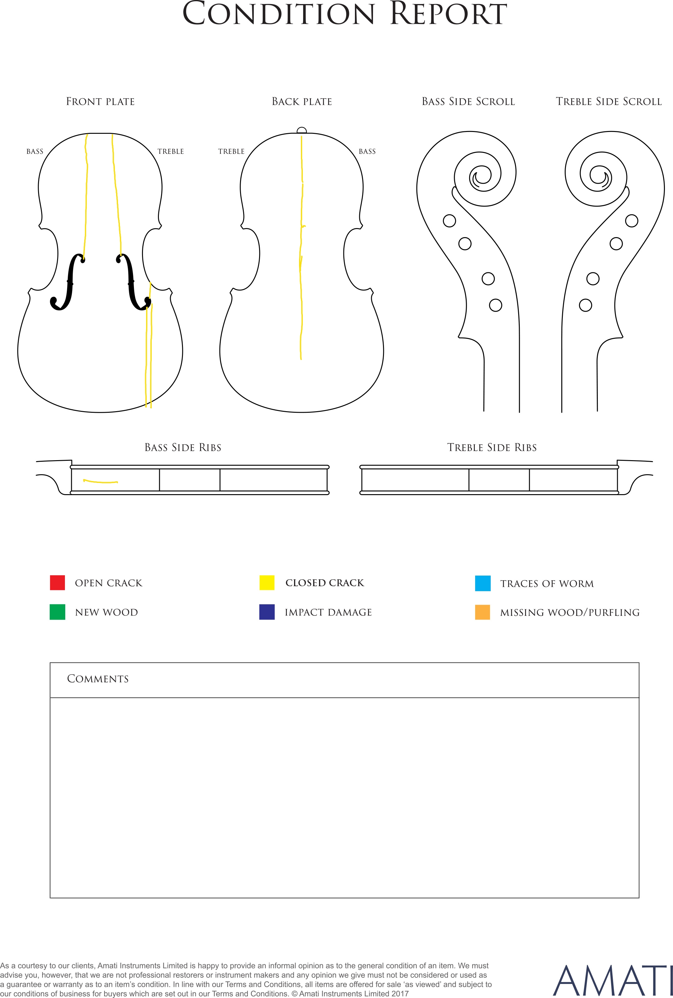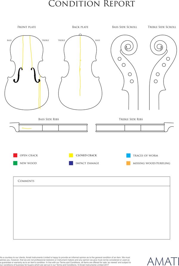 Please note condition reports for the instruments and bows will be added to the Lot pages this week.