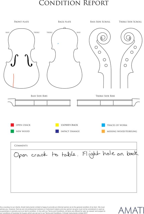 Please note condition reports for the instruments and bows will be added to the Lot pages this week.