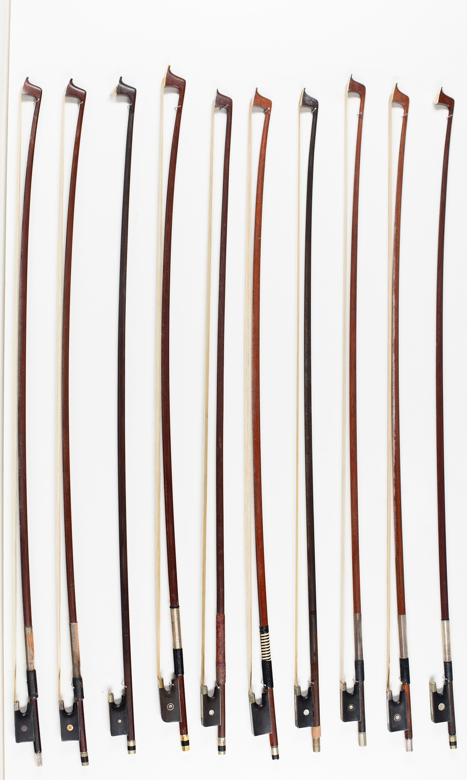 Ten violin bows