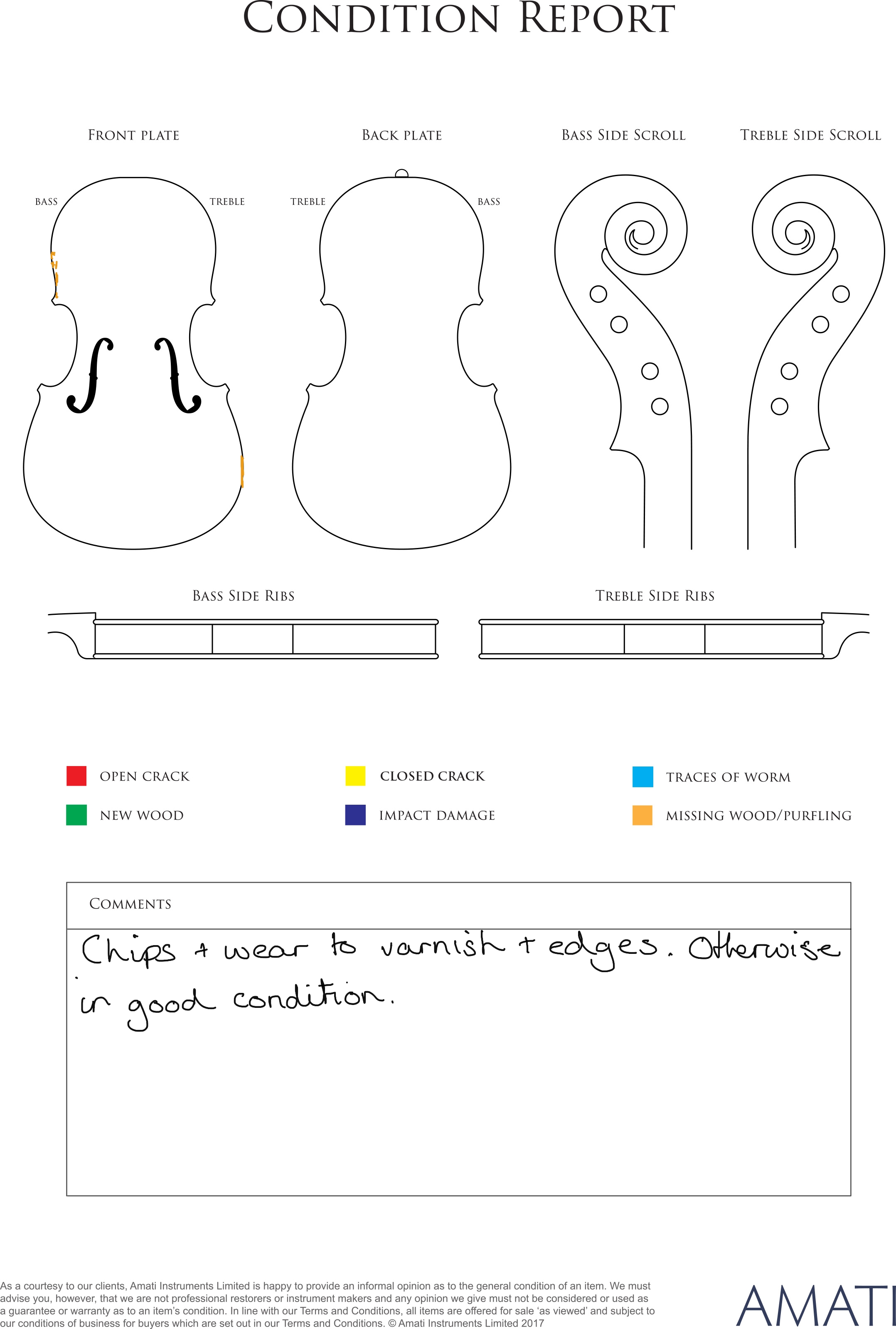 Please note condition reports for the instruments and bows will be added to the Lot pages this week.