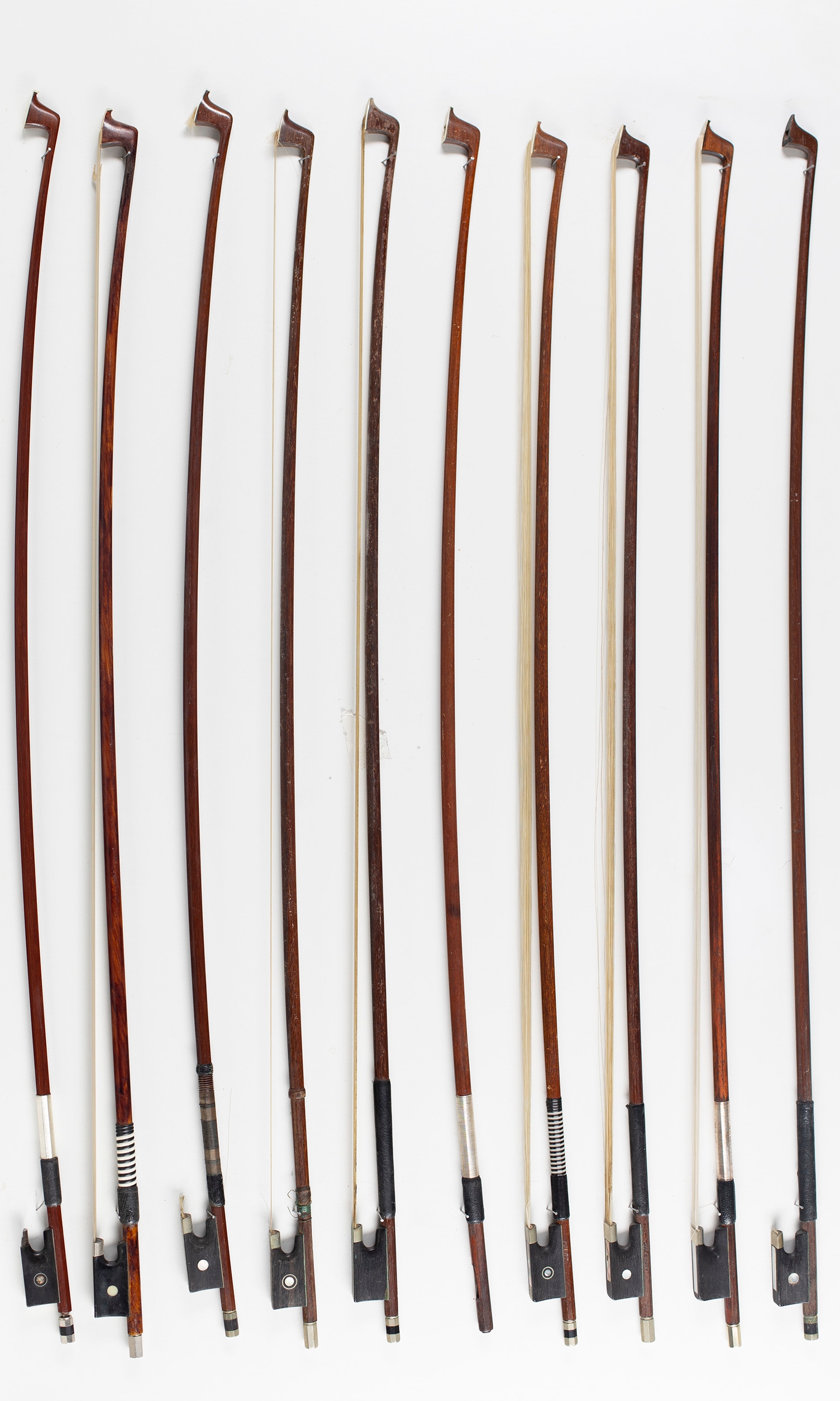 Ten violin bows, various sizes
