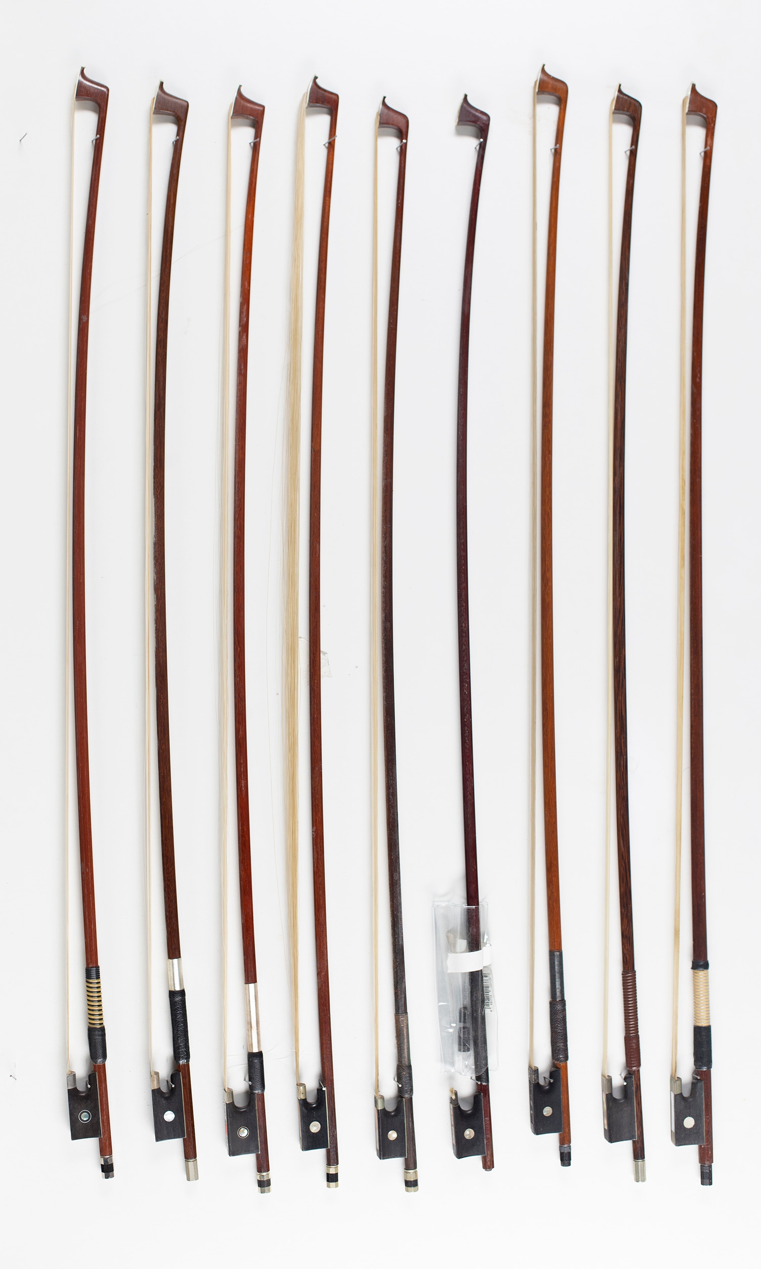 Ten violin bows, various sizes