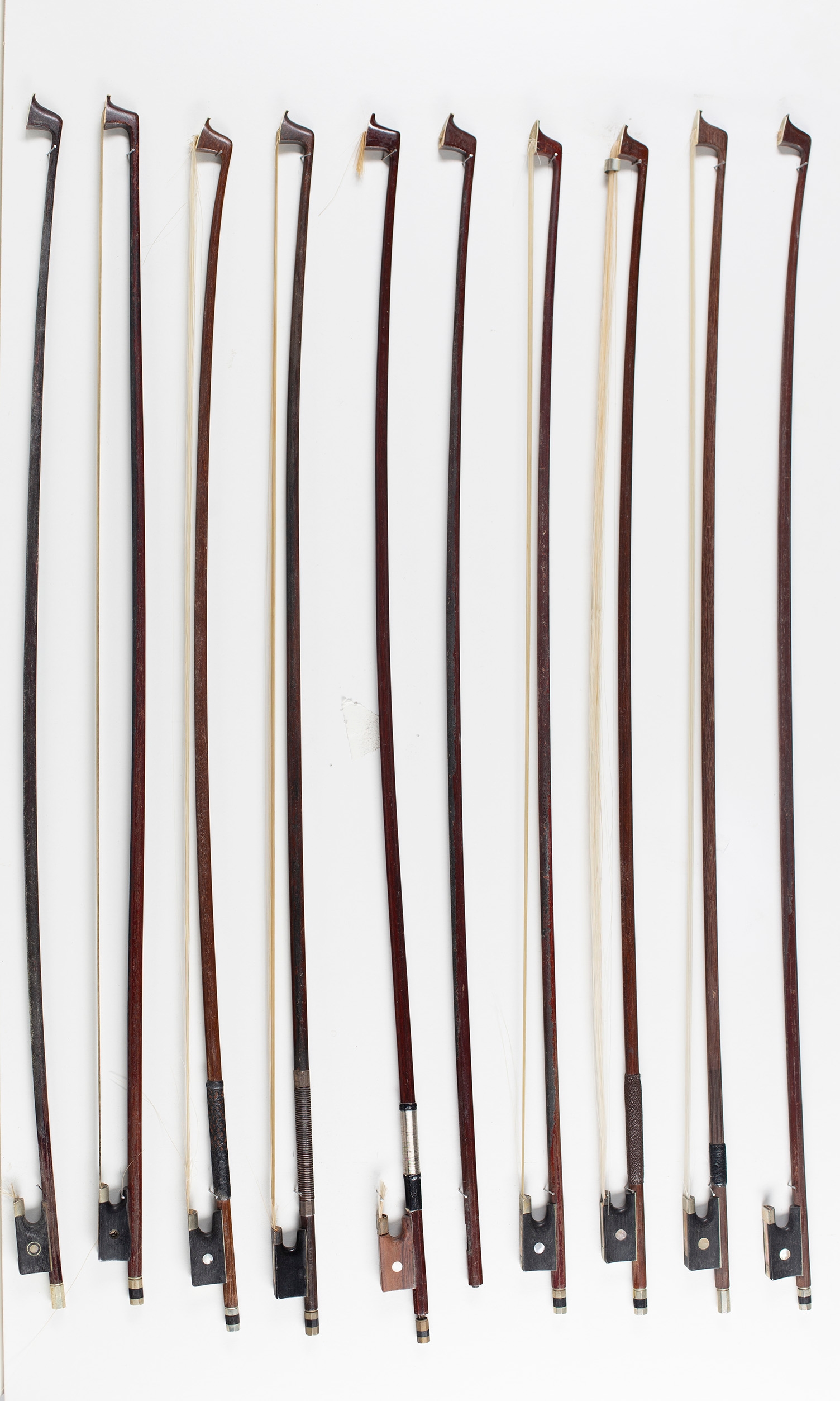 Ten violin bows, various sizes