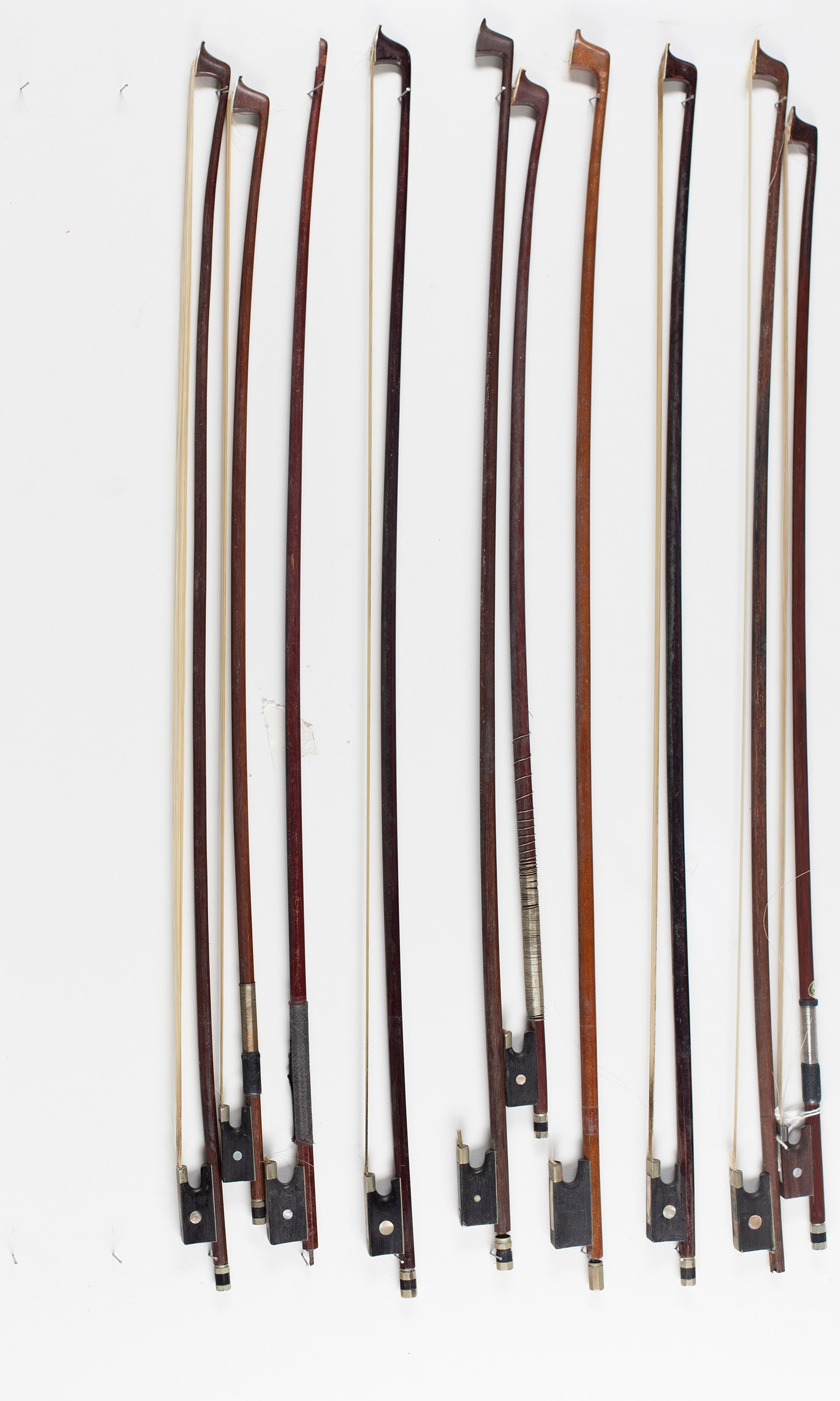 Ten child's violin bows, various sizes
