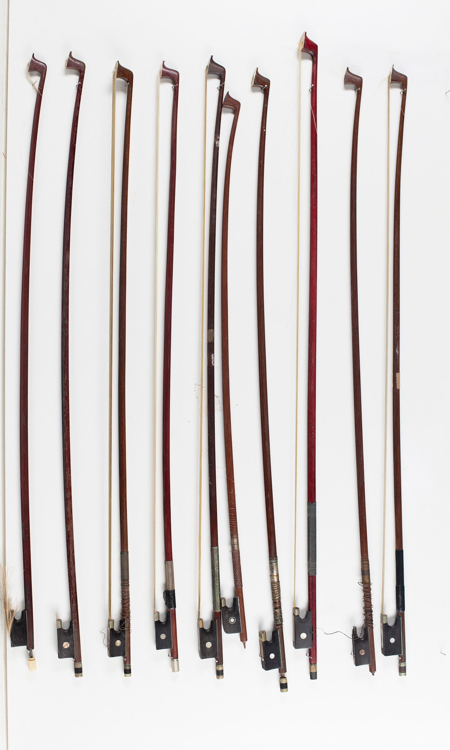 Ten child's violin bows, various sizes