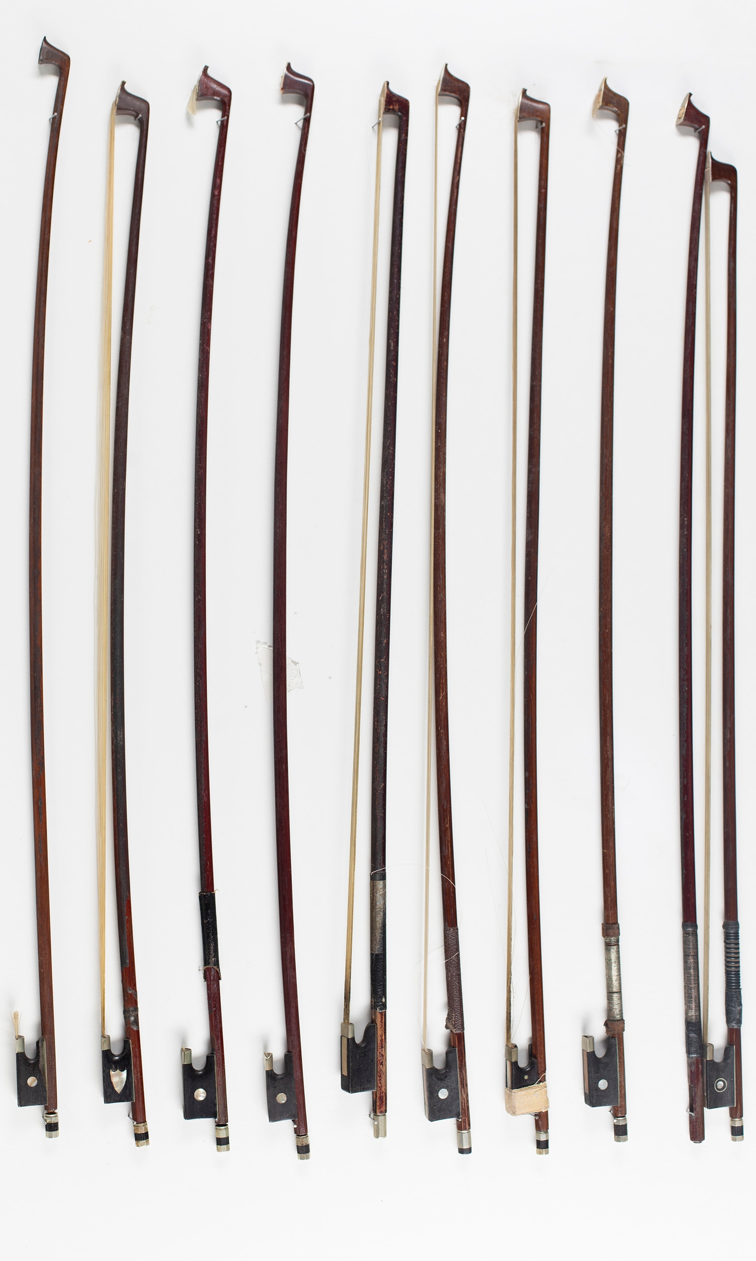 Ten child's violin bows, various sizes
