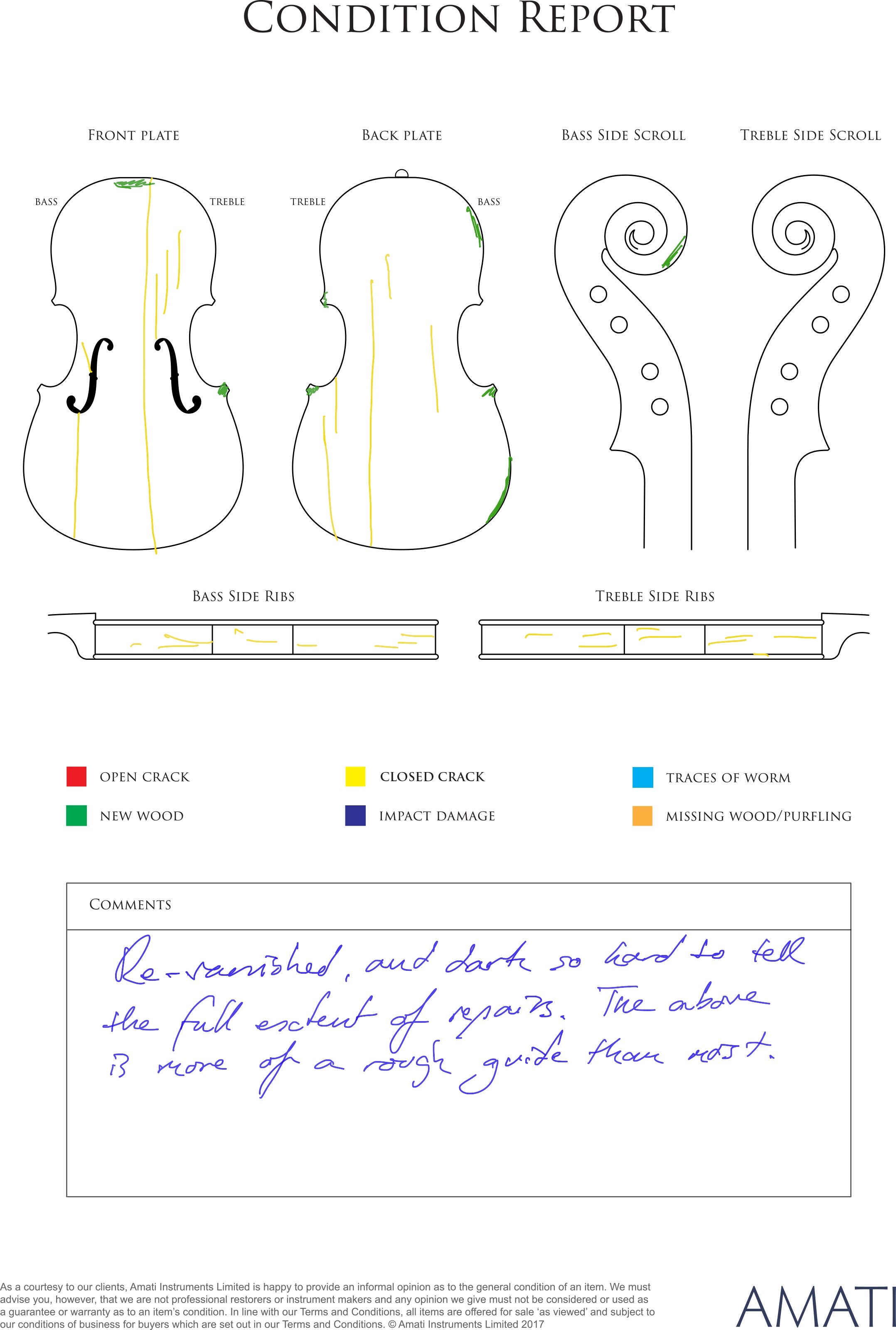 With Romberg fingerboard; standard stop length; mid swell back, flattened rib corner joints; external linings