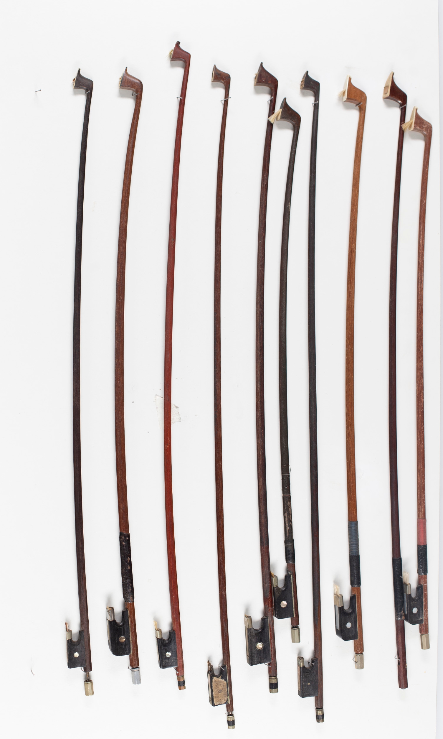 Five cello bows and five violin bows of varying length