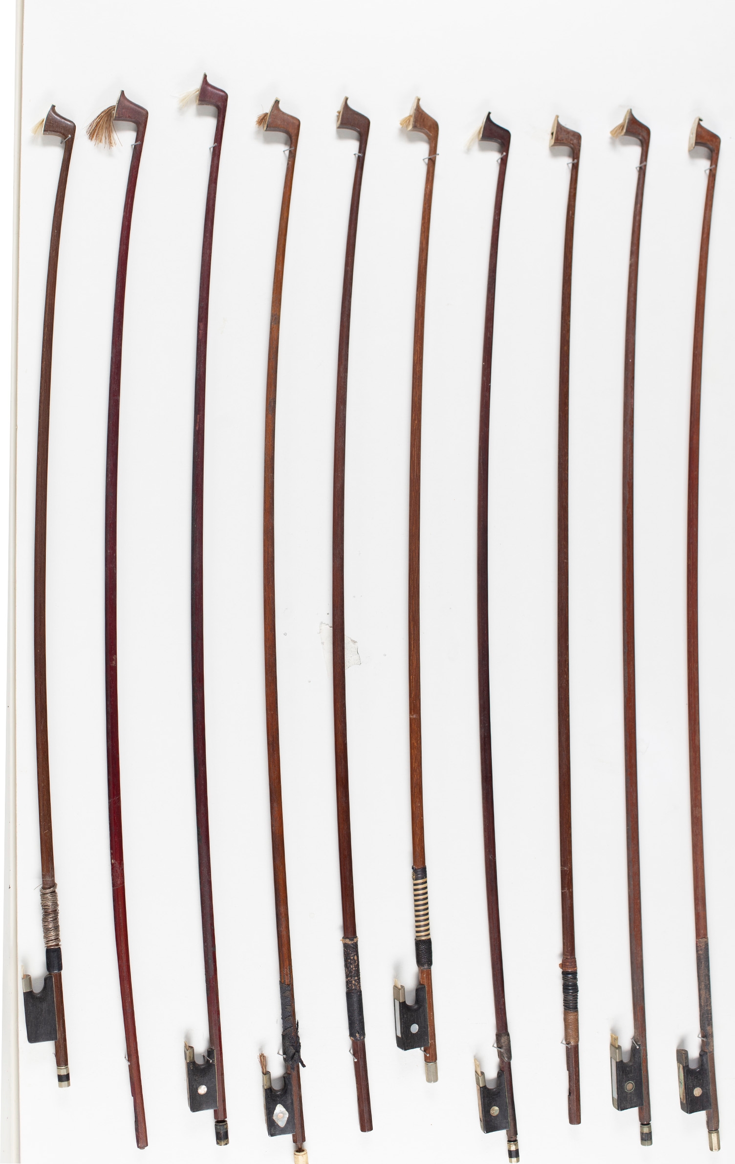 Ten violin bows of varying lengths