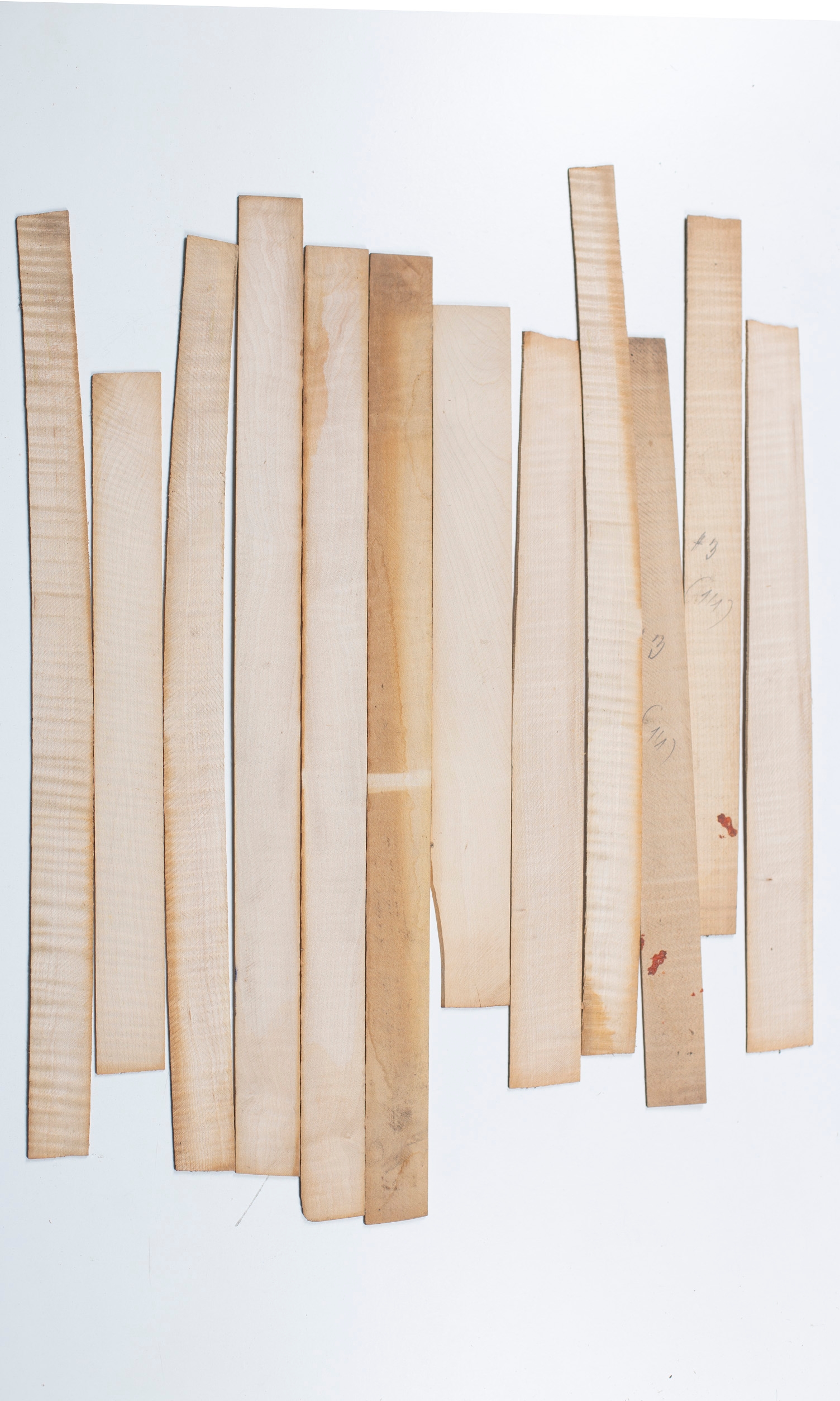 Twelve violin ribs, maple