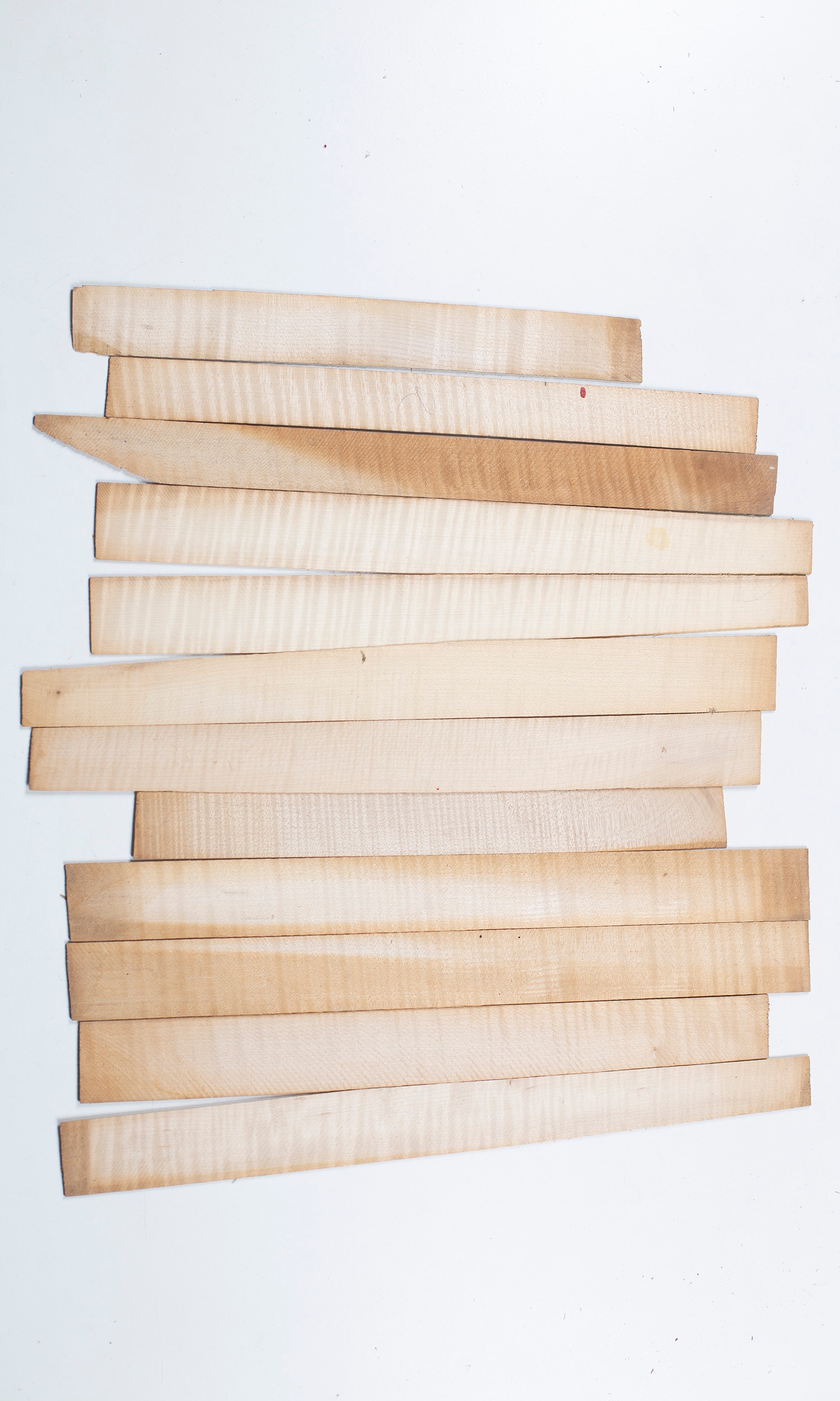 Twelve violin ribs, maple
