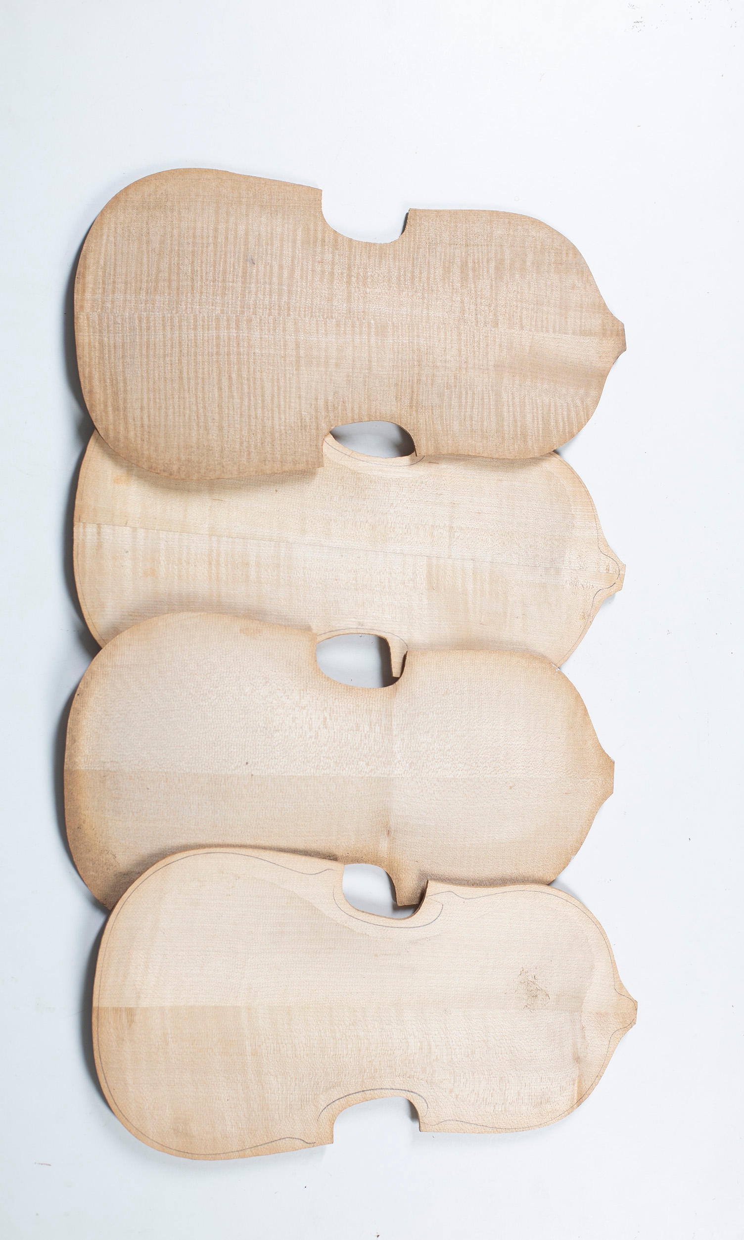 Four small partially complete violin backs