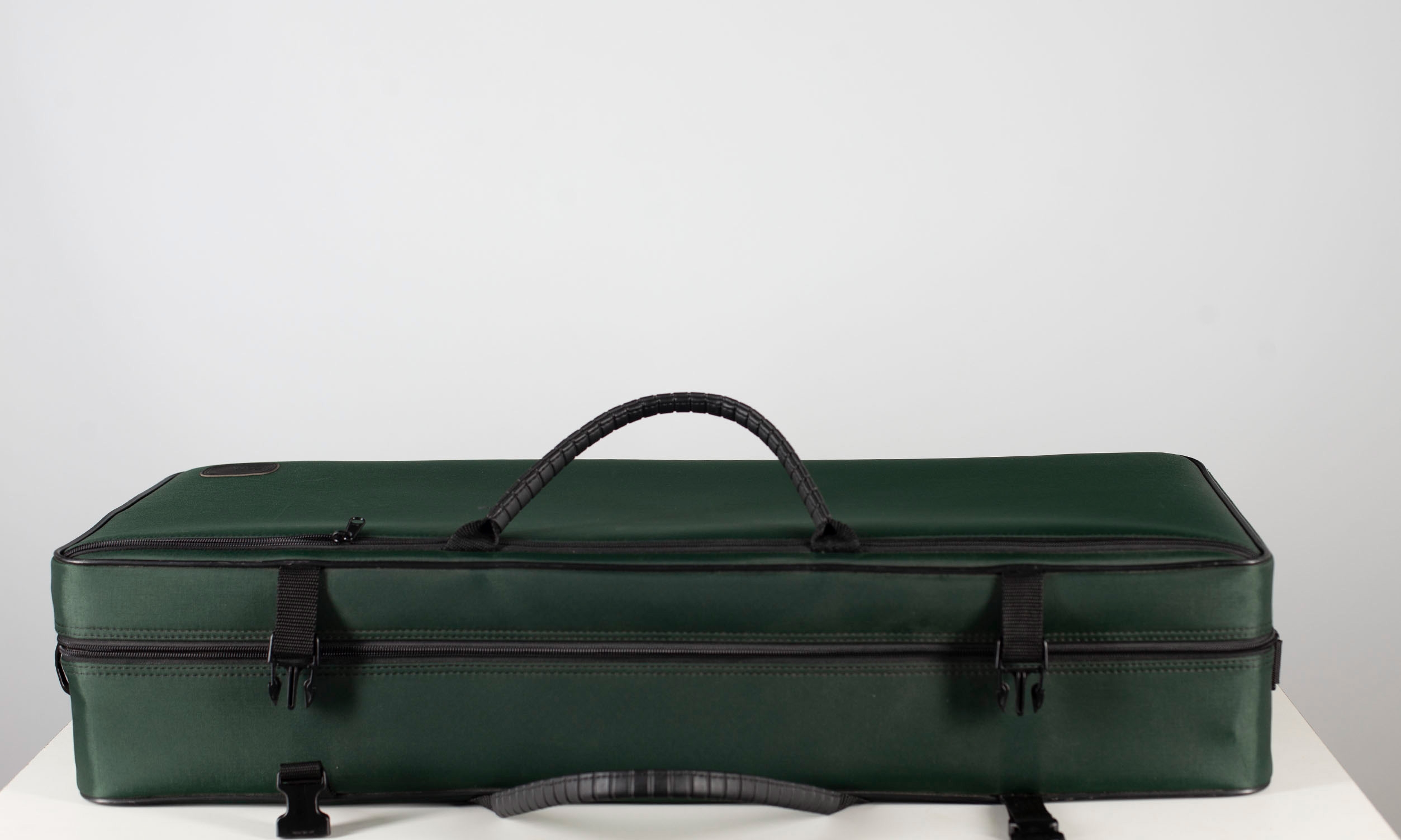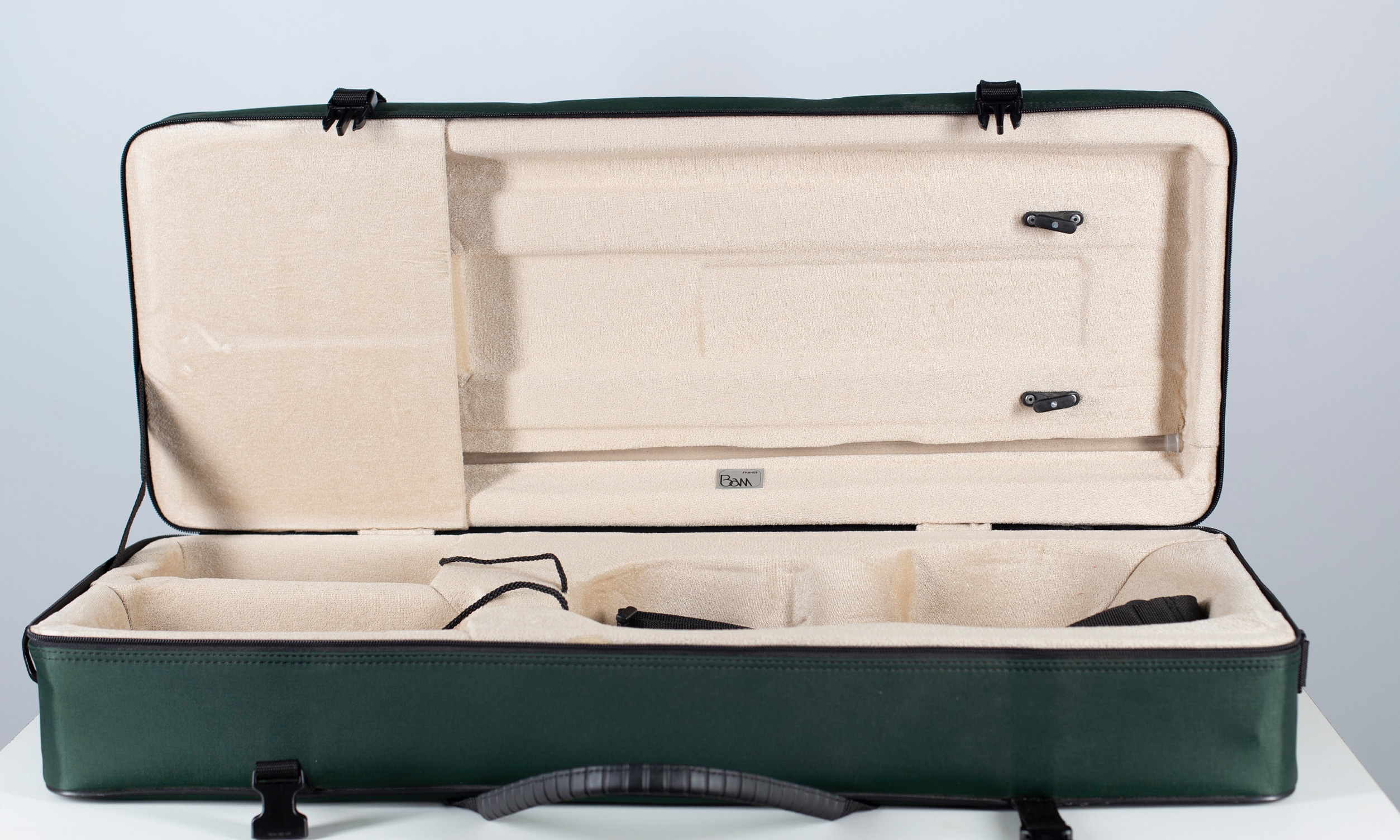 A green viola case branded BAM