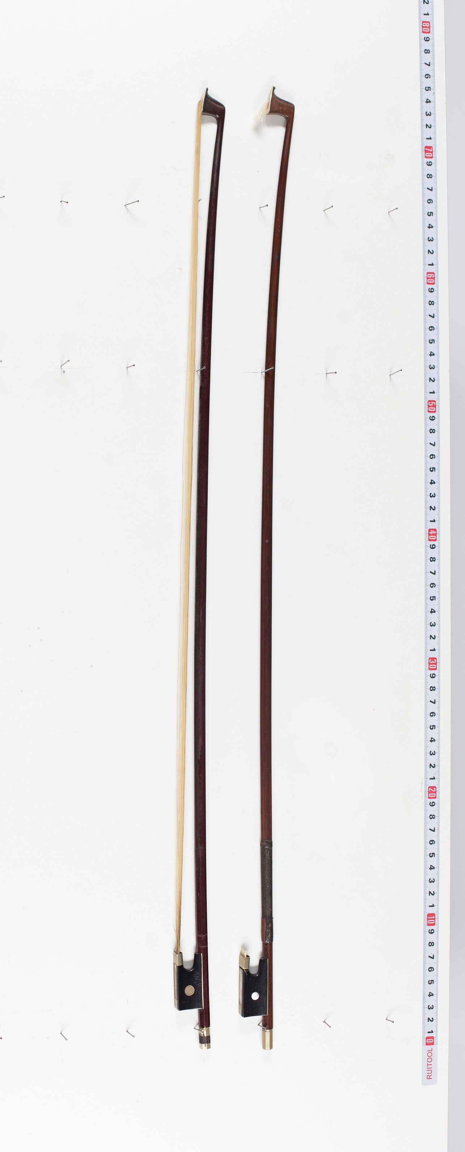 Twelve violin bows, varying lengths