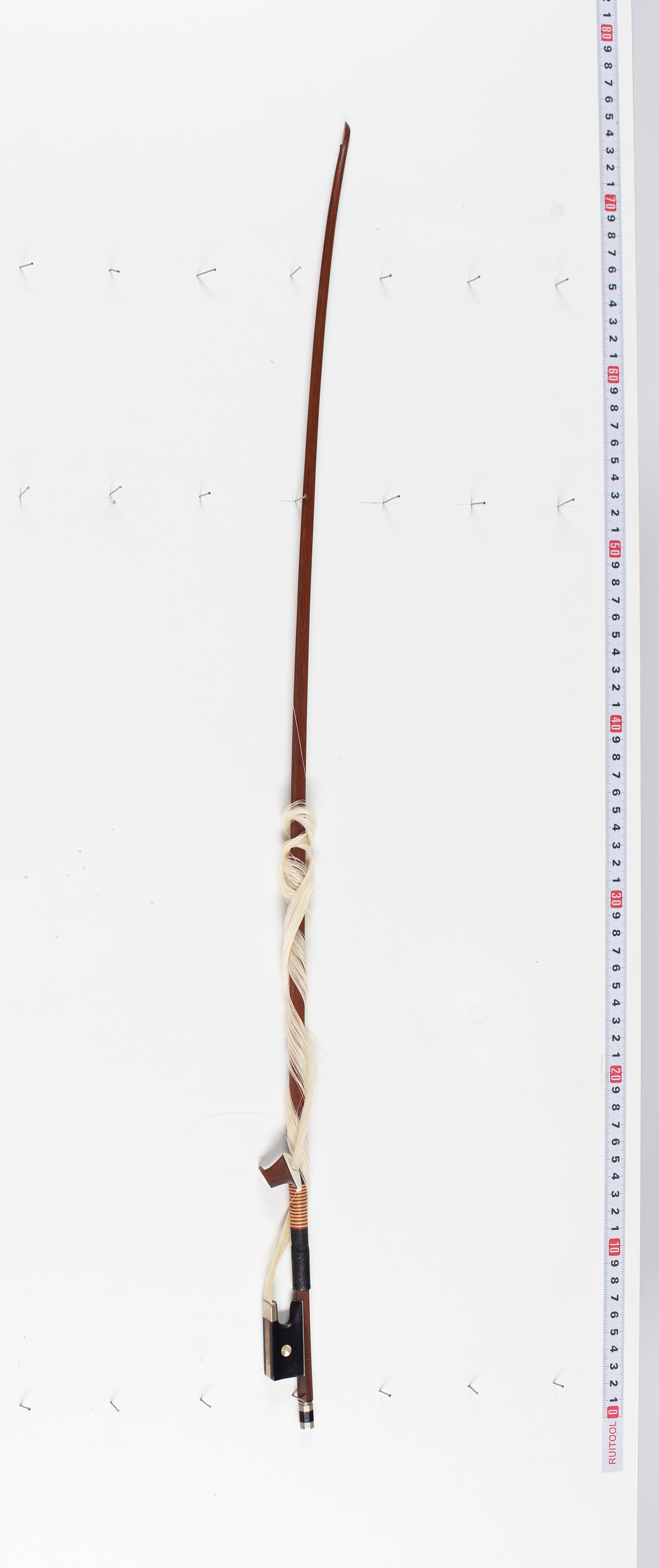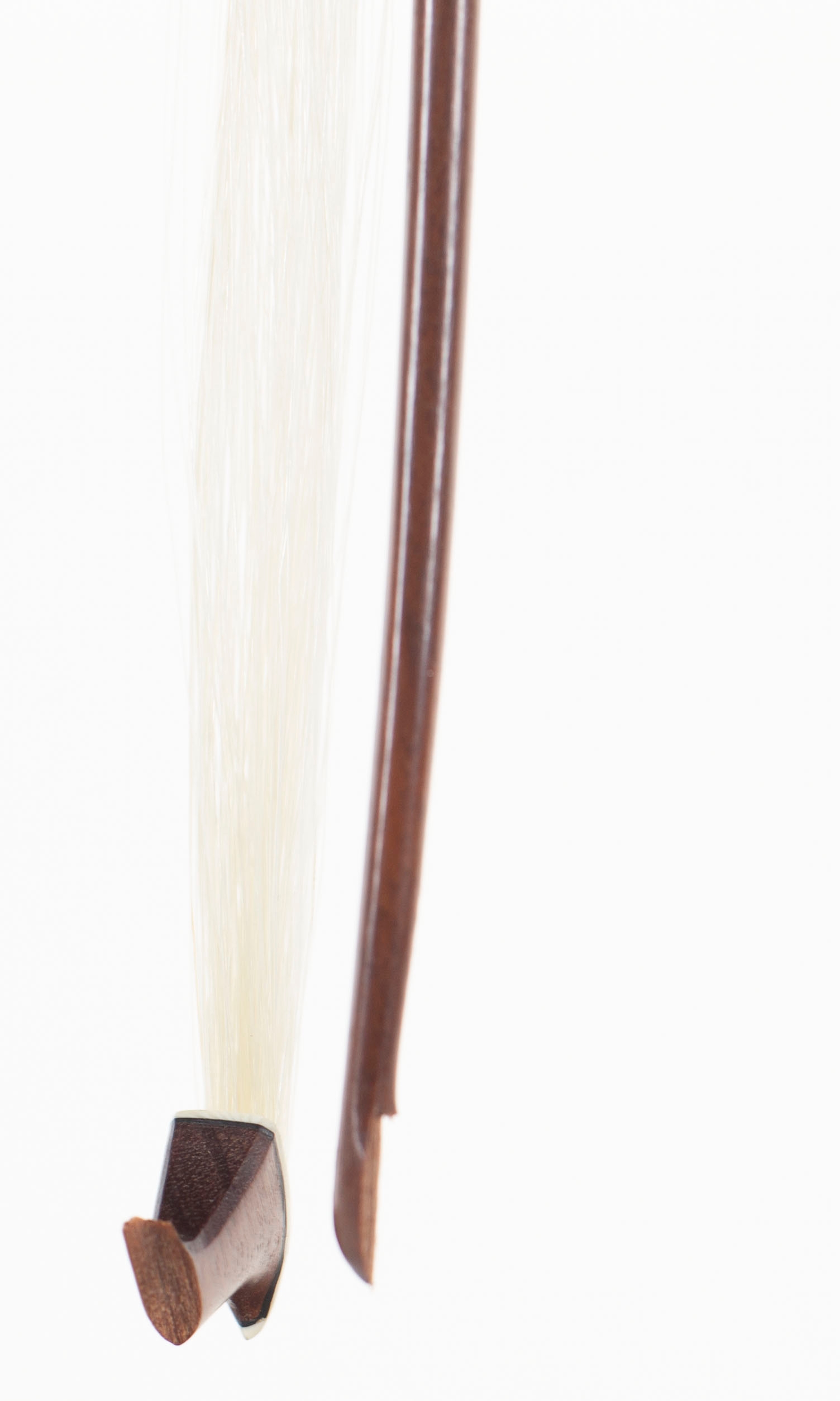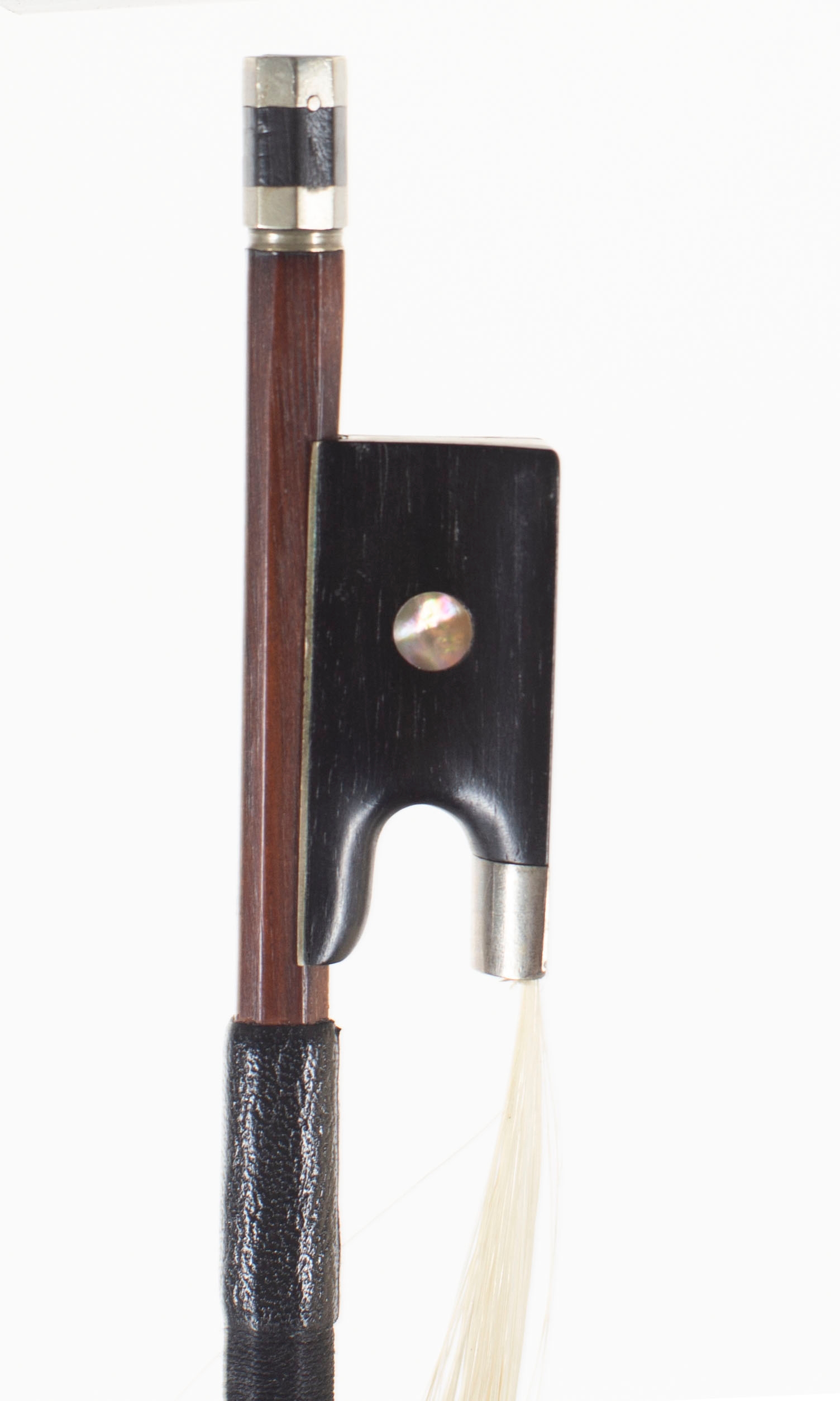 A nickel-mounted violin bow, branded Emile Ouchard