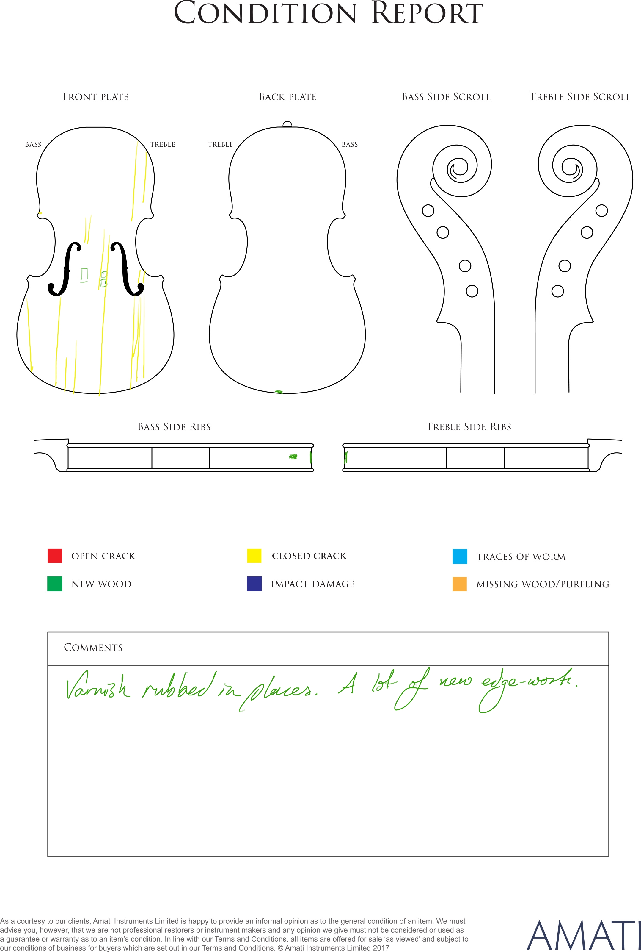 A violin, faintly labelled