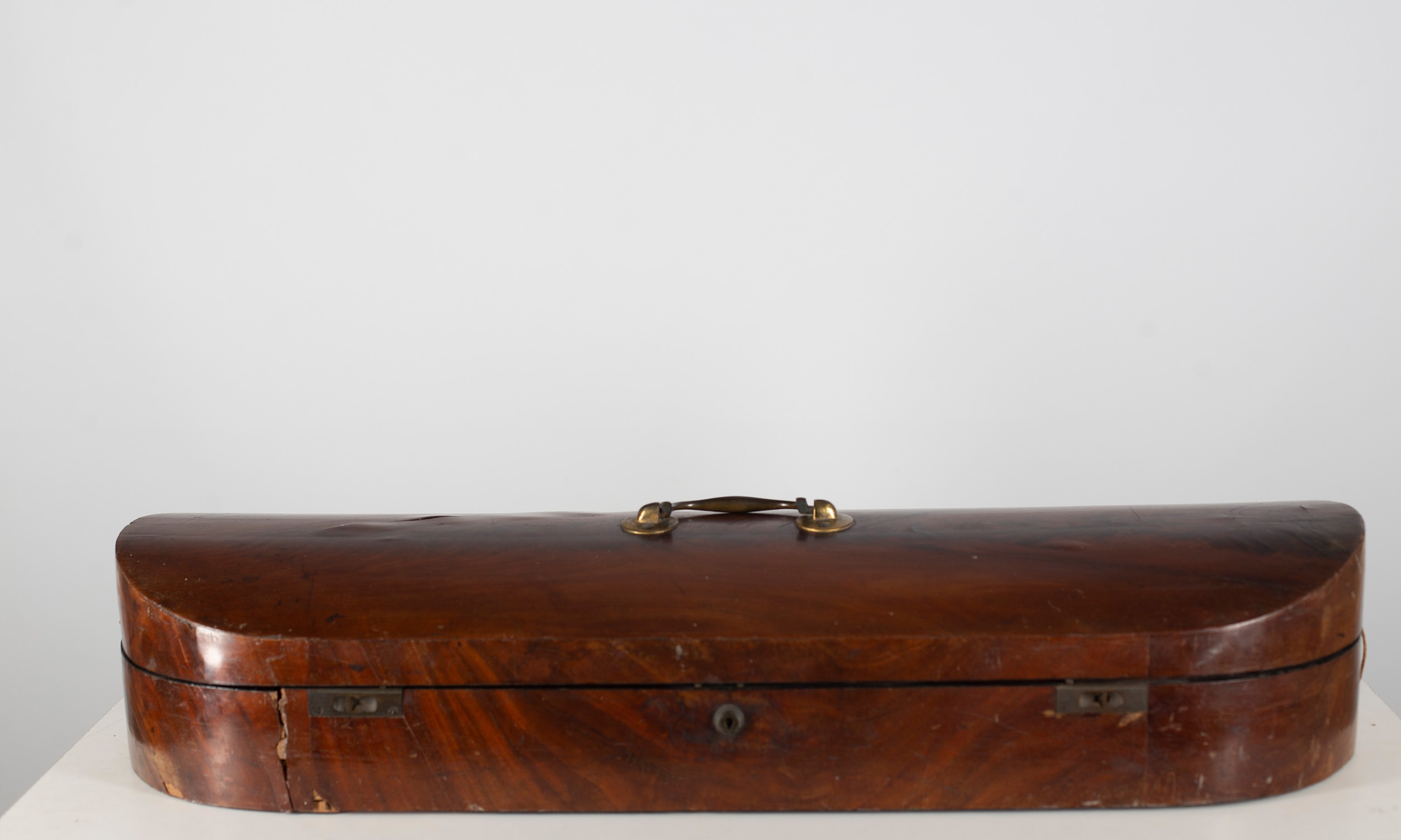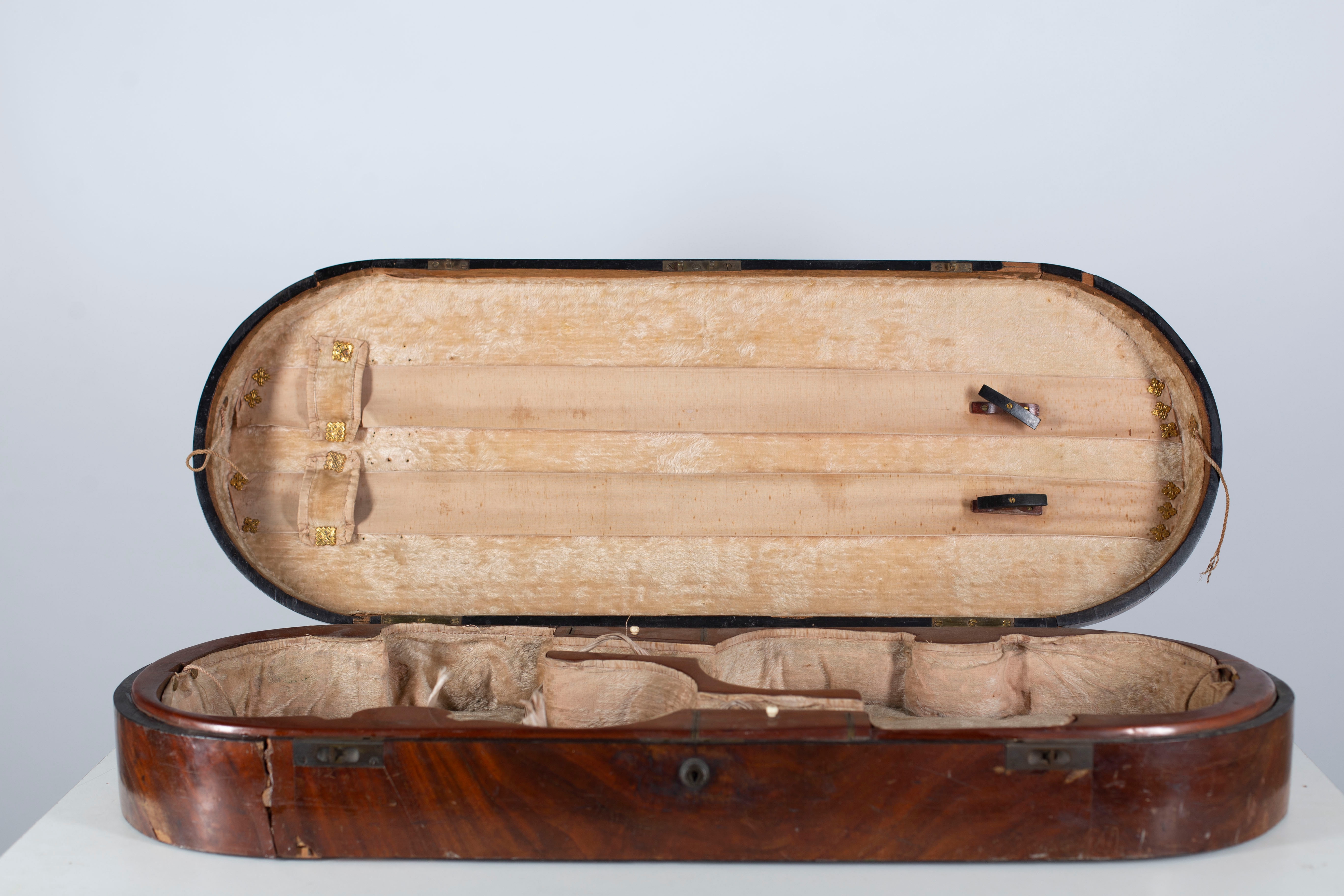 A double violin case branded W. E. Hill