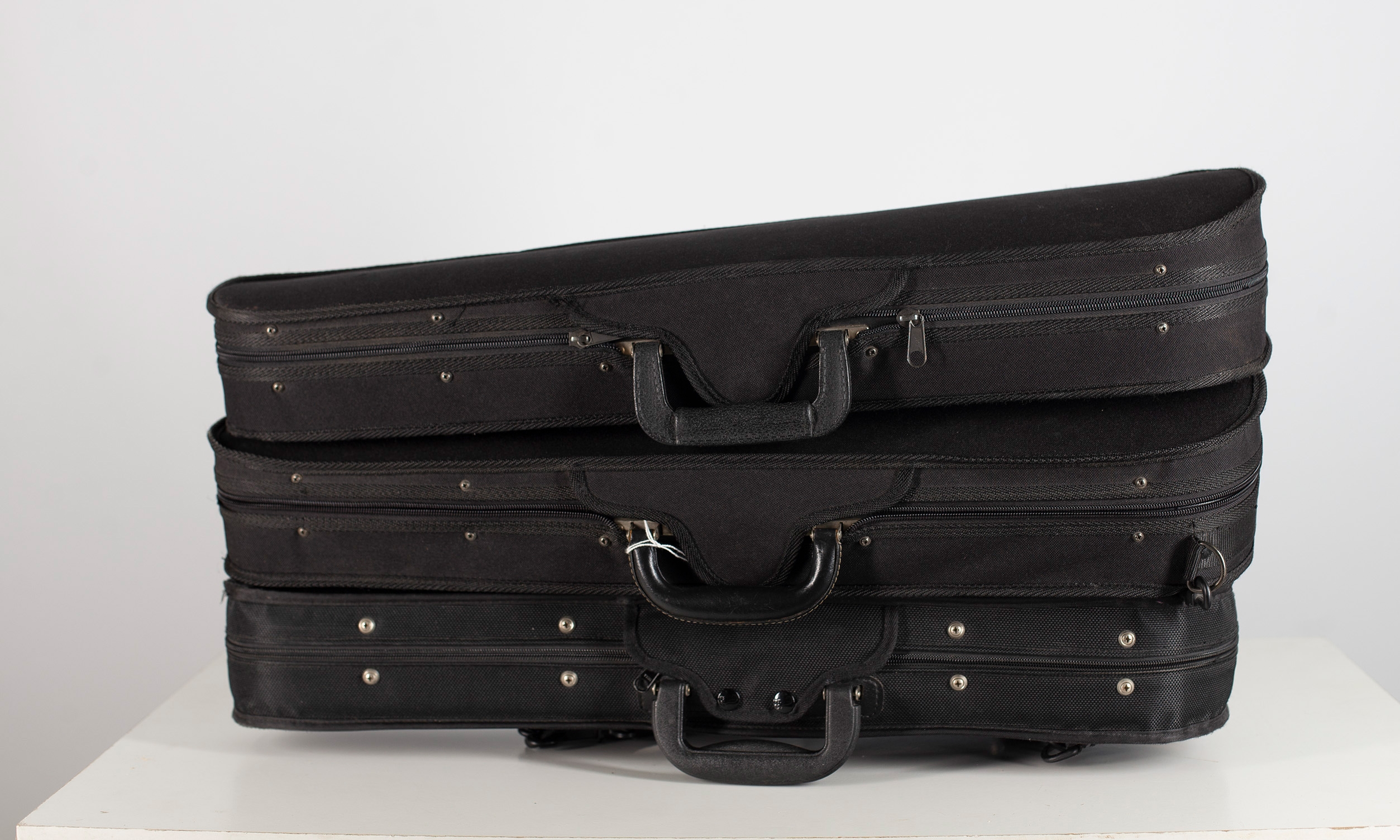 Three black half-size violin cases