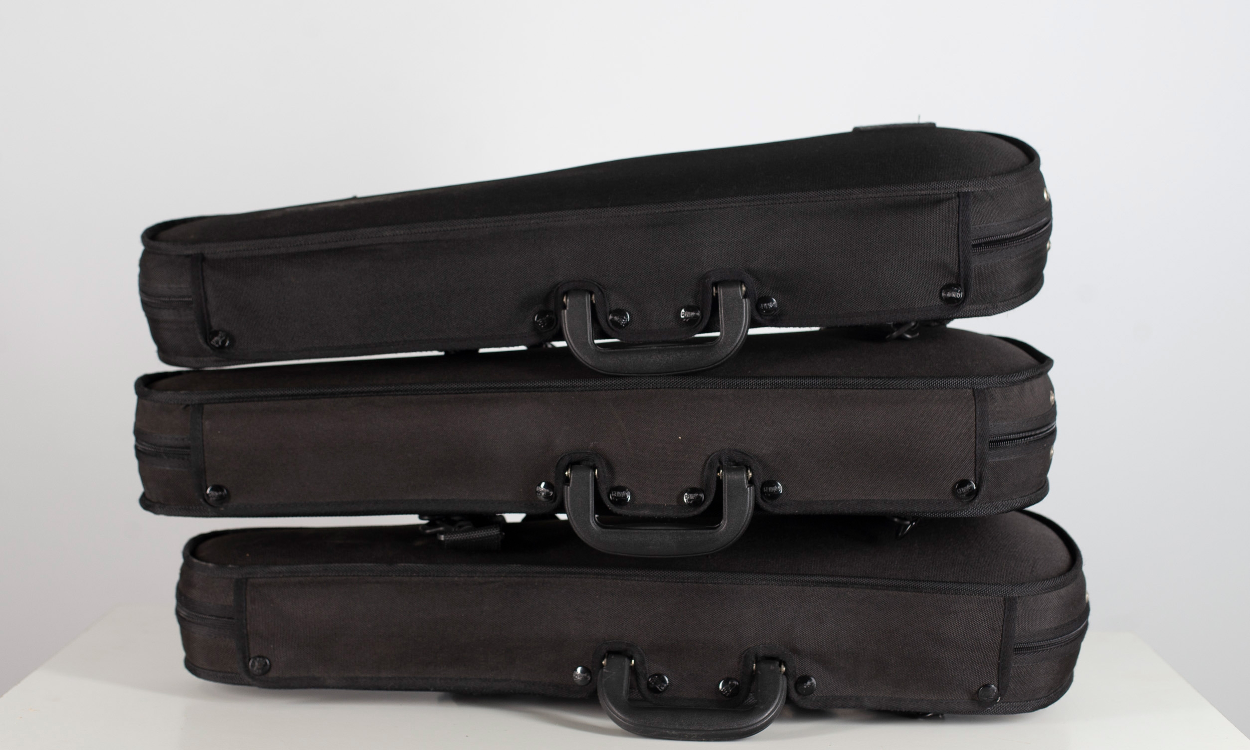 Three black half-size violin cases, branded Gewa