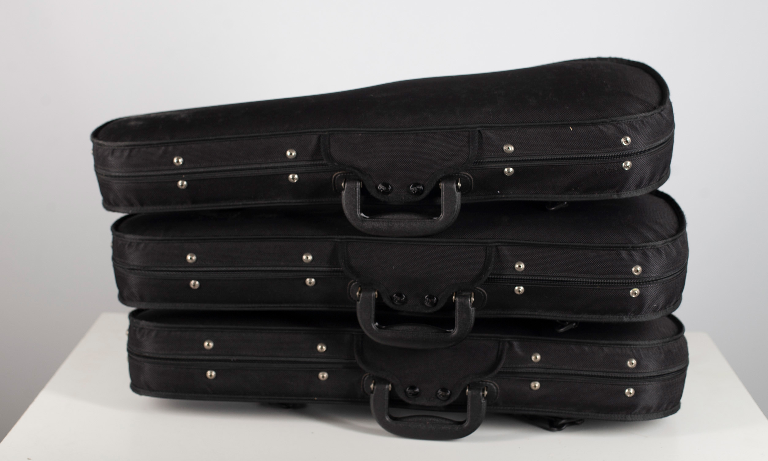 Three black half-size violin cases