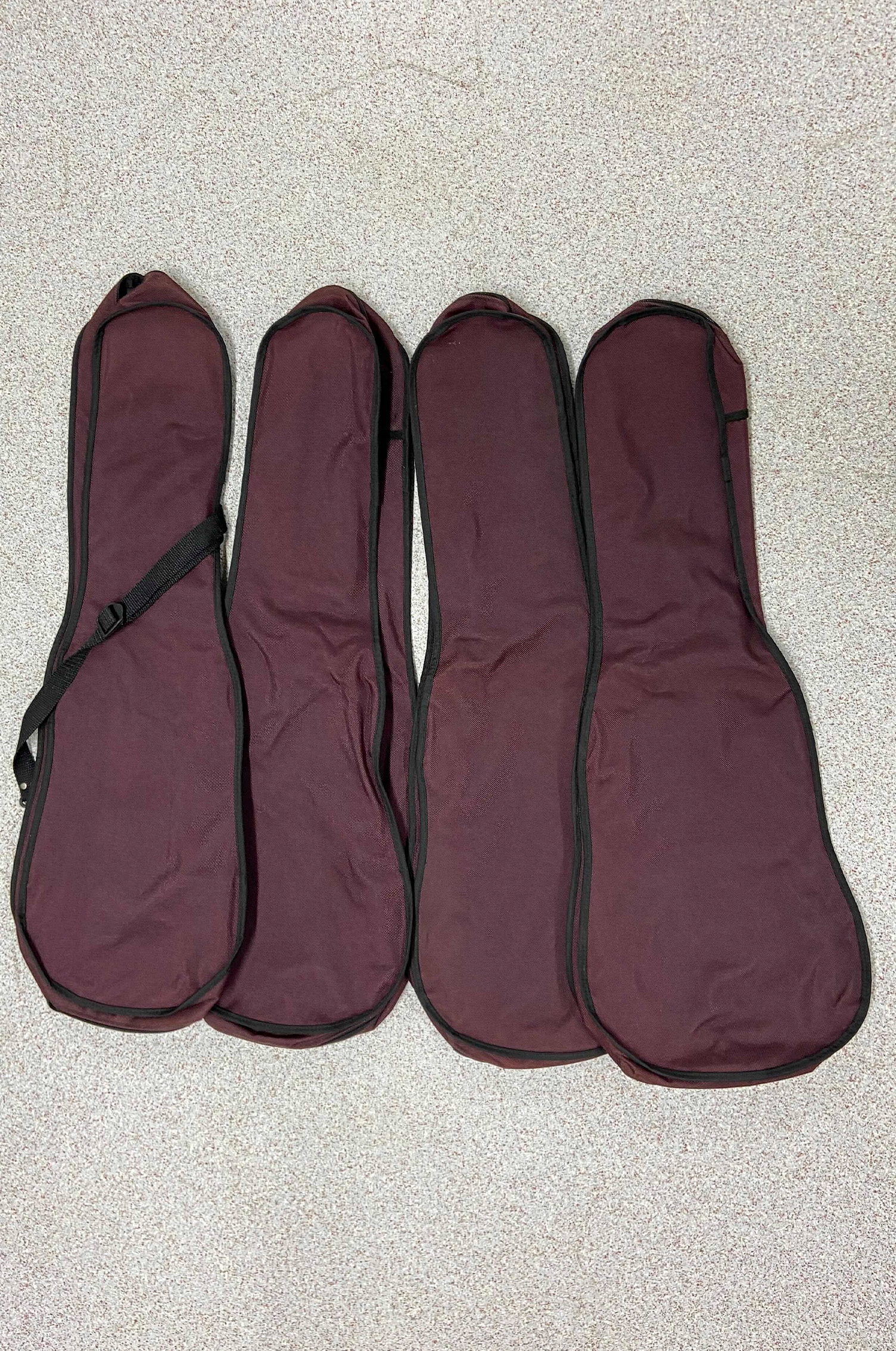 Five burgundy violin case covers